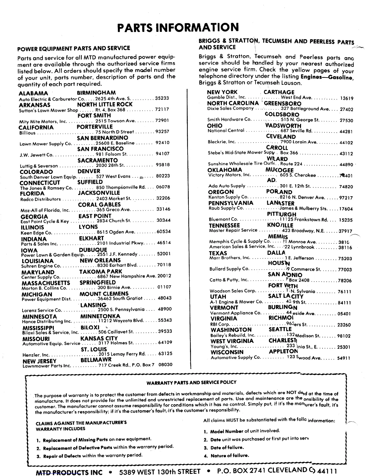 MTD 198-992A - Parts Information
