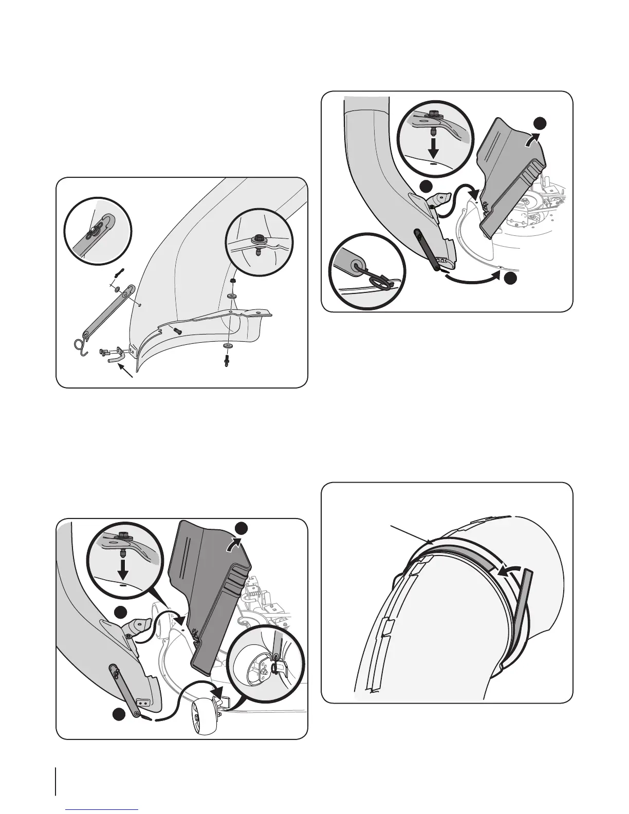 1. Install the rubber chute strap, from hardware pack