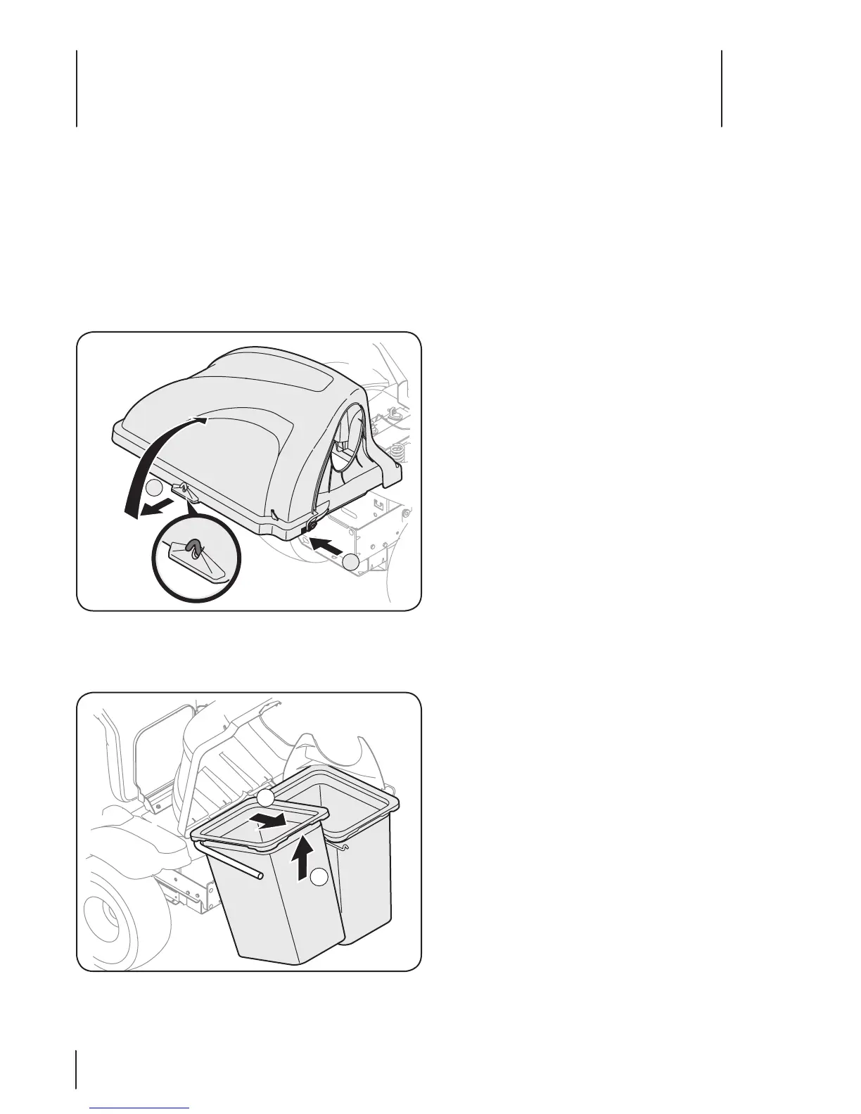 3. Remove the grass bags by lifting these up (1 in Figure 5-2)