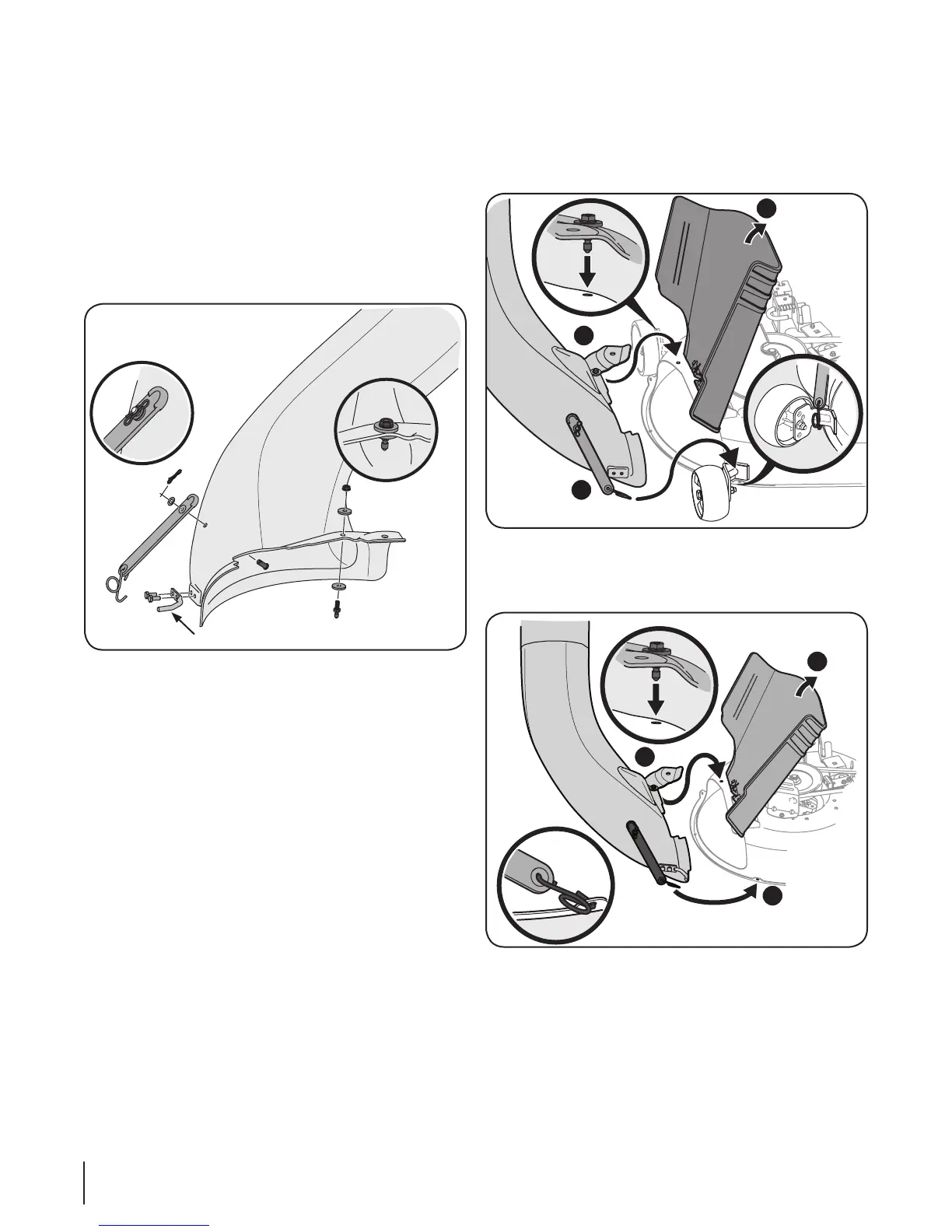 3. Con el canal de descarga del tractor elevado y abierto (1 de la