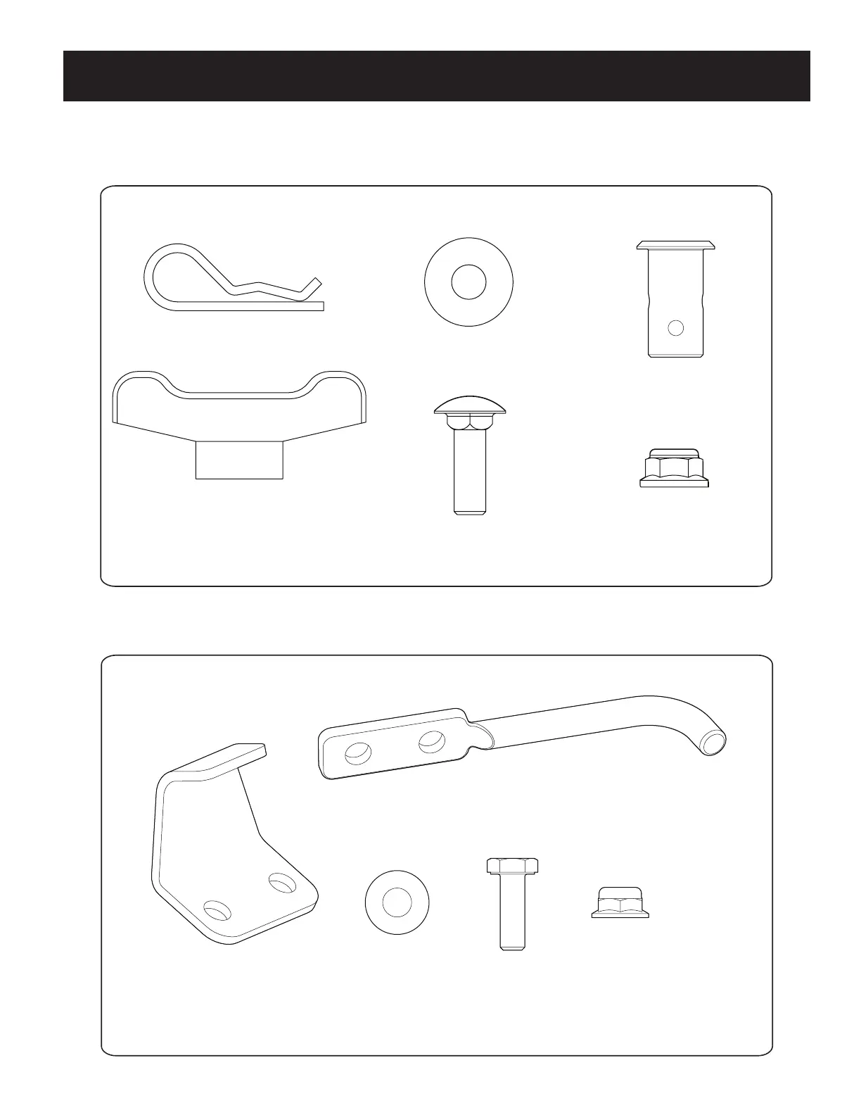 Please check your hardware packs against the illustrations below. The quantities for each item are listed in parentheses.