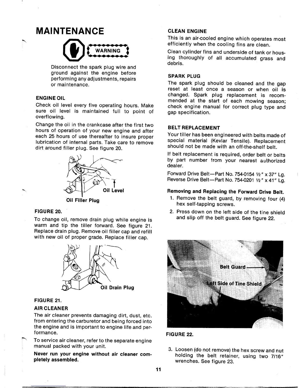 MTD 213-381A - Maintenance; Engine Oil; Air Cleaner; Clean Engine