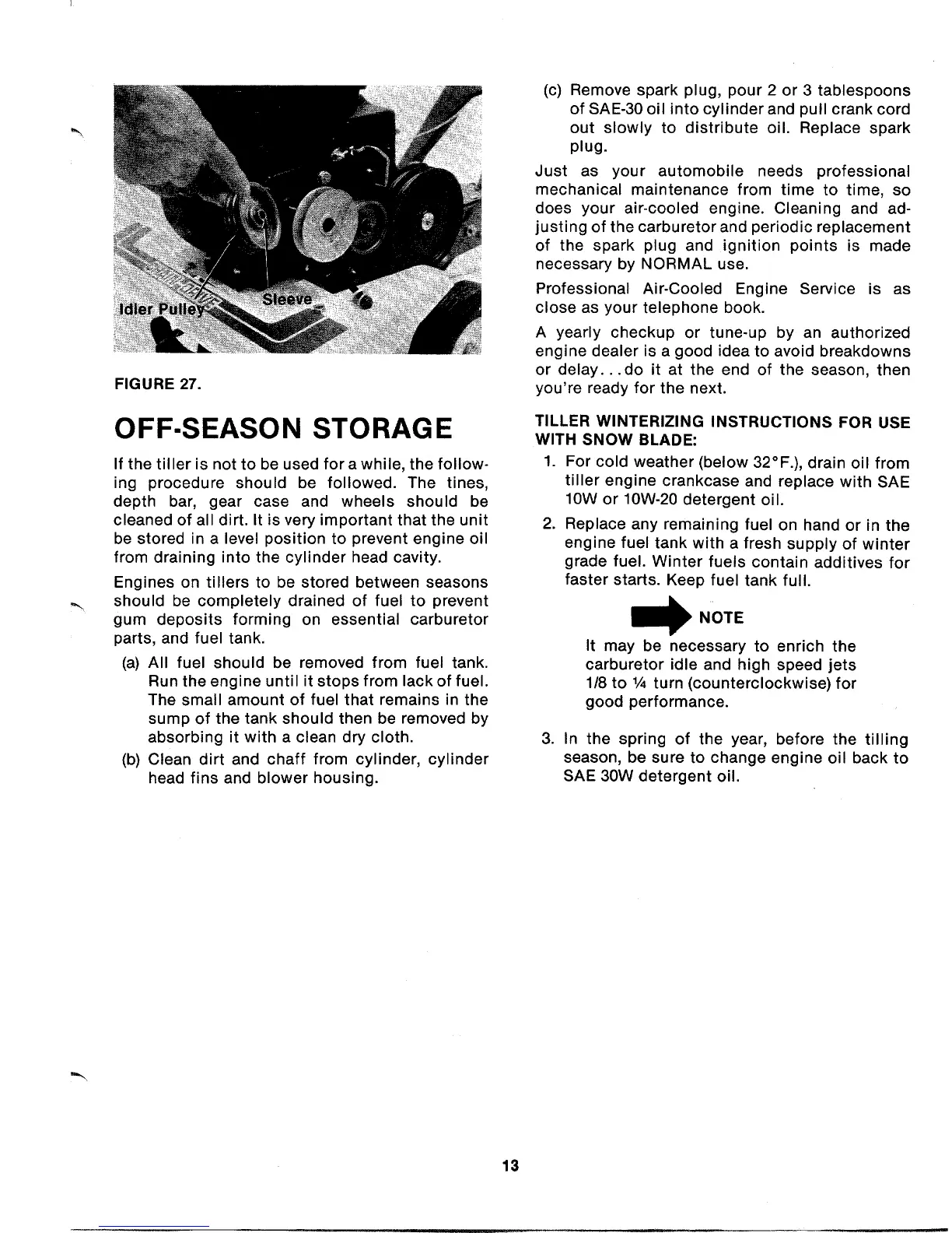 MTD 213-381A - Off-Season Storage; Tiller Winterizing Instructions for Use with Snow Blade