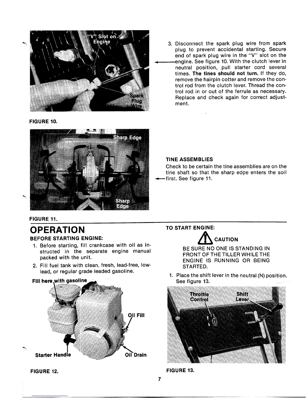 MTD 213-381A - Operation; Tine Assemblies; Before Starting Engine; To Start Engine
