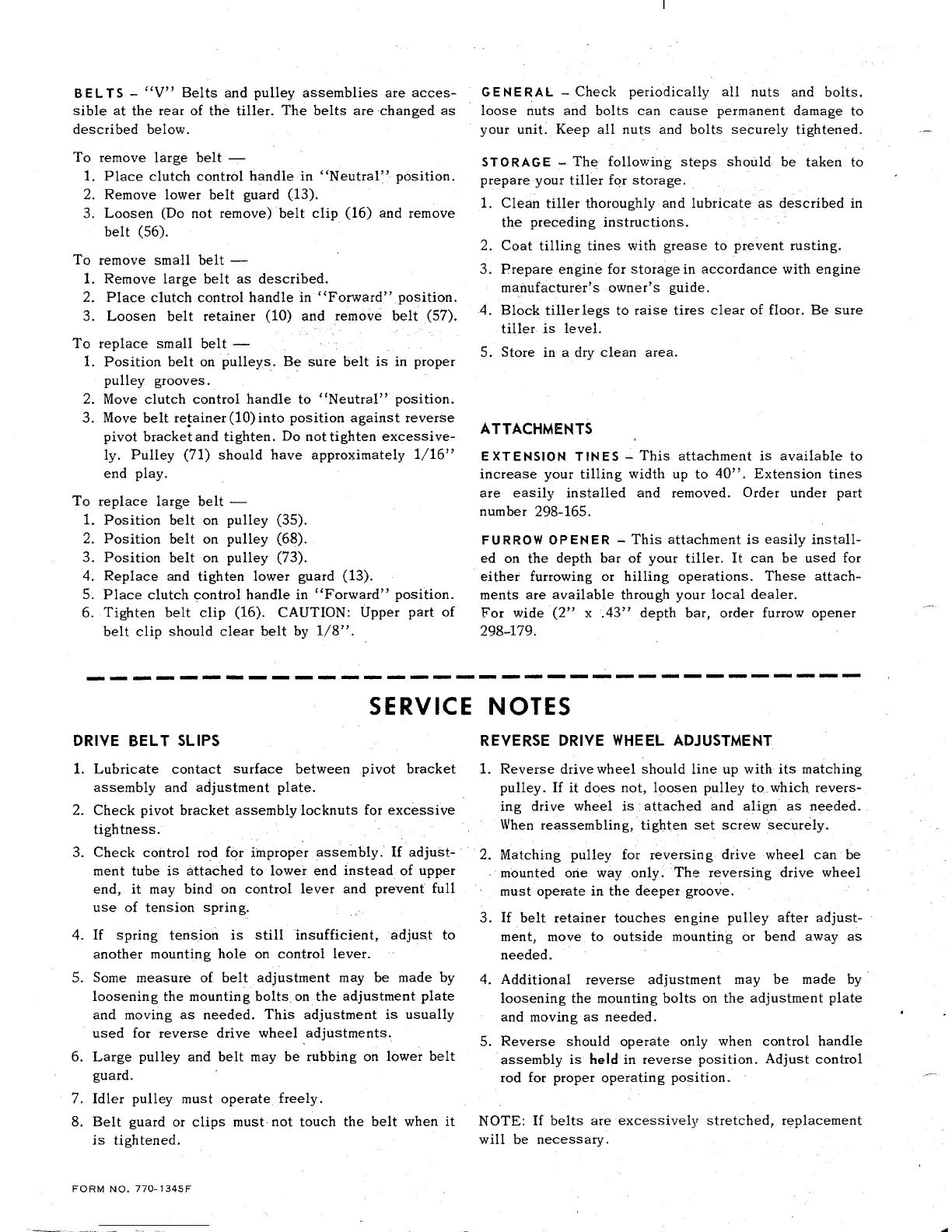 MTD 218-360 - Service Notes; Drive Belt Slips; Reverse Drive Wheel Adjustment; Attachments