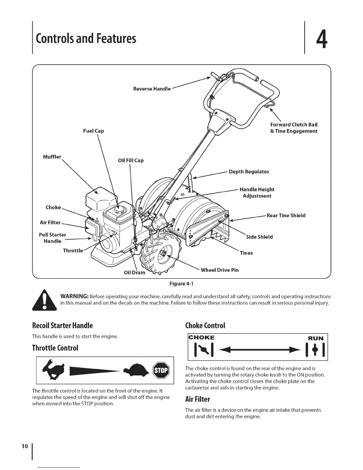 WARNING: Before operating your machine, carefully read and understand all safety, controls and operating instructions