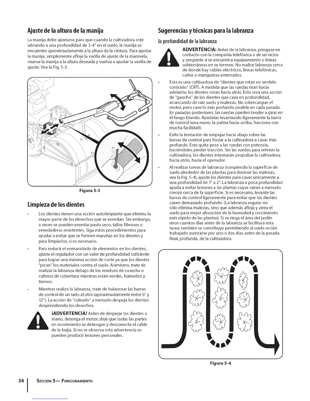 vea la Fig. 5-4), ajuste los dientes para cavar unicamente a