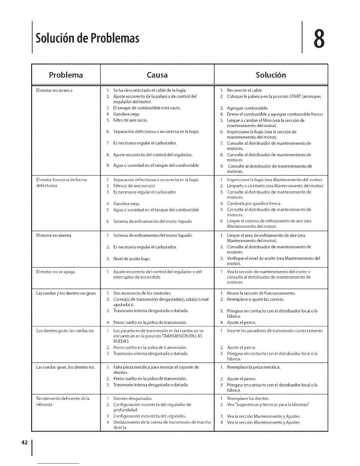 8. Consulte al dlstrlbuudor de mantemmiento de