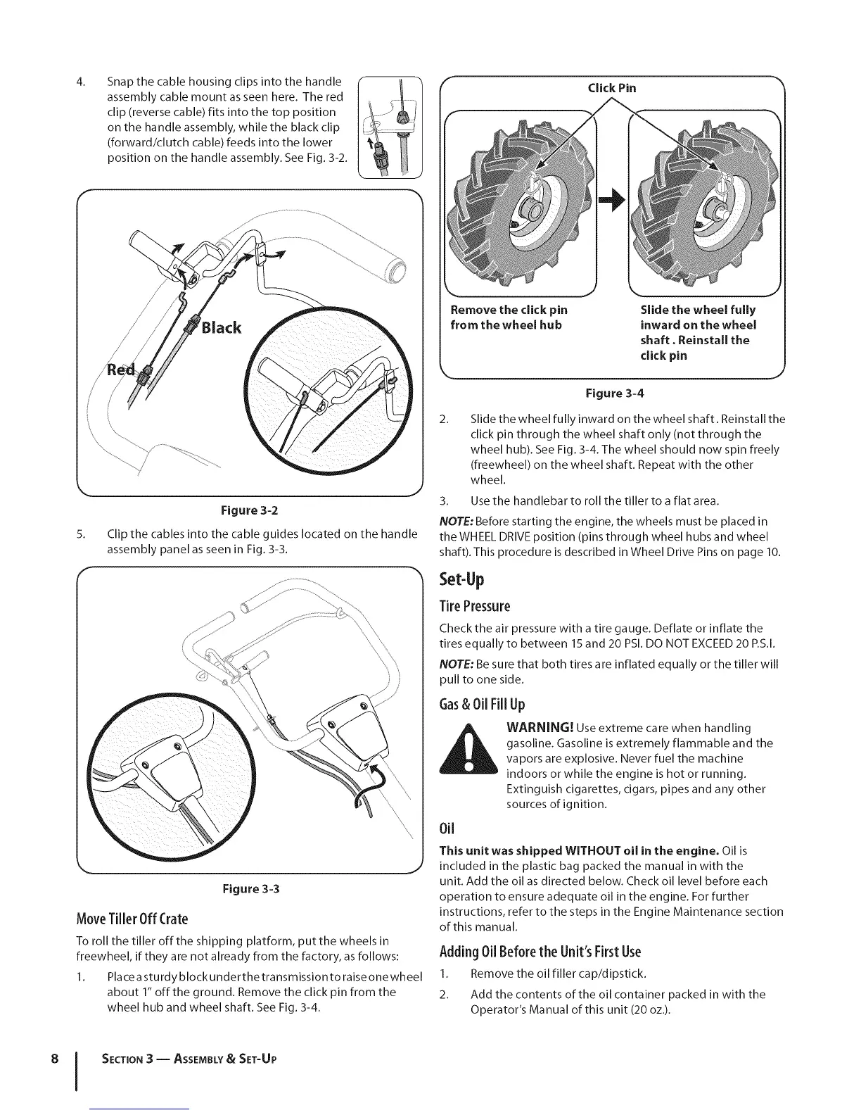 NOTE: Be sure that both tires are inflated equally or the tiller will