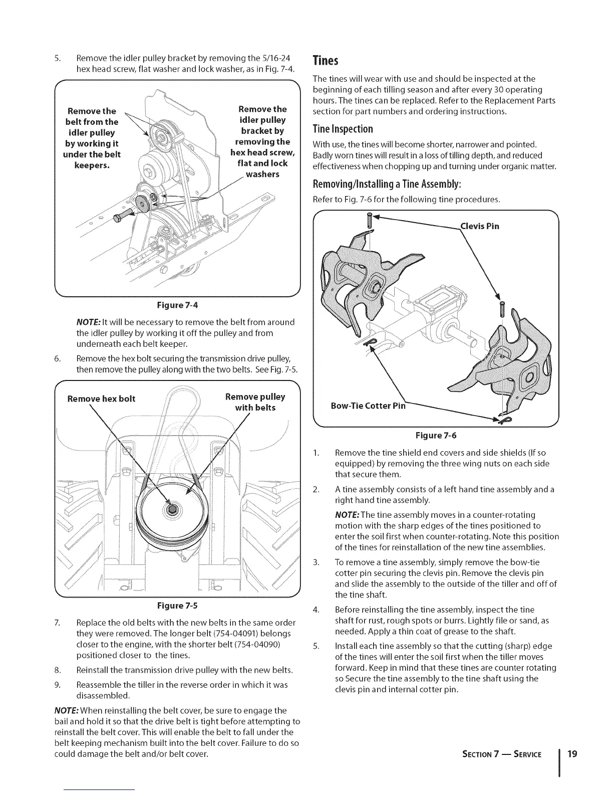 Refer to Fig. 7-6 for the following tine procedures.