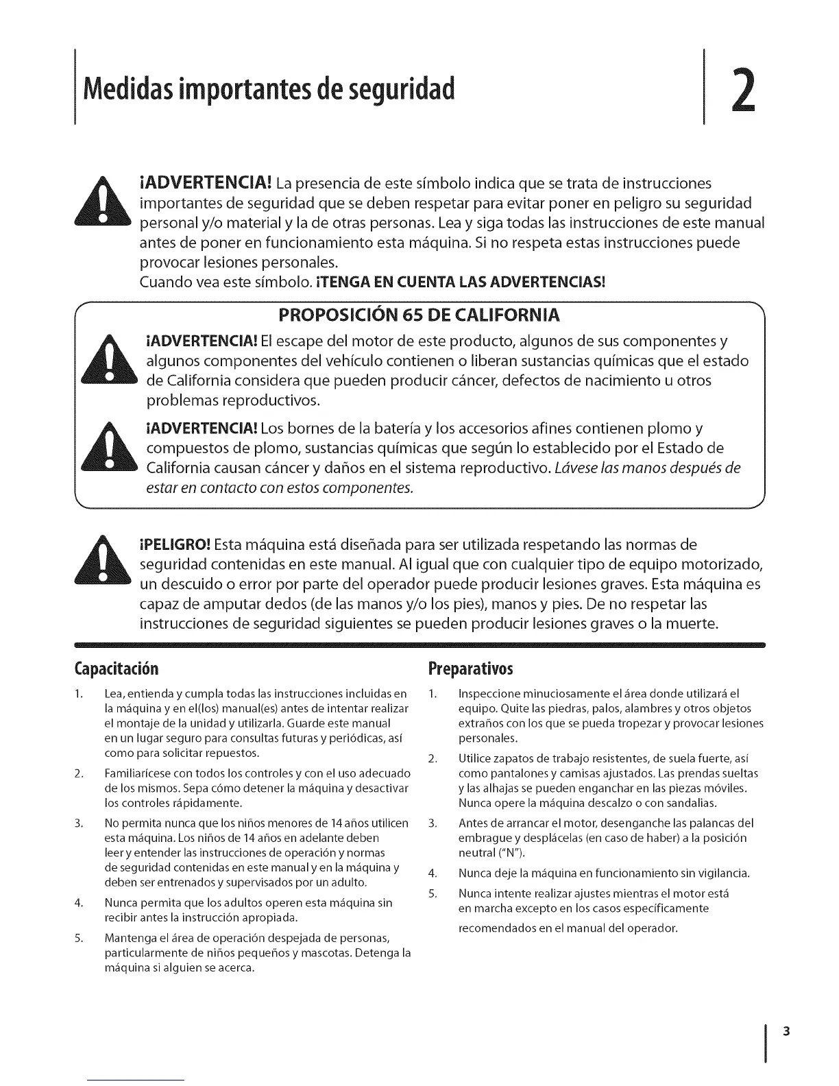 iPELIGRO! Esta m_quina est_ diseflada para set utilizada respetando las normas de