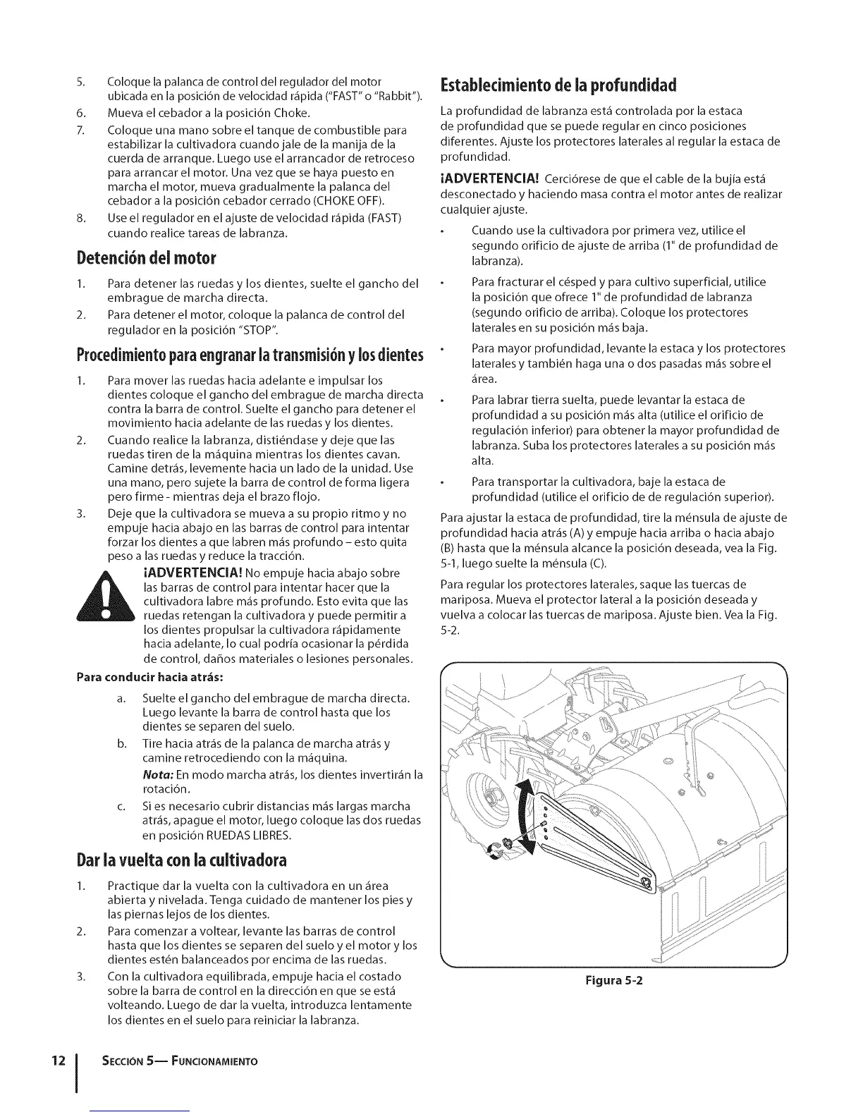 3. Con la cultivadora equilibrada, empuje hacia el costado