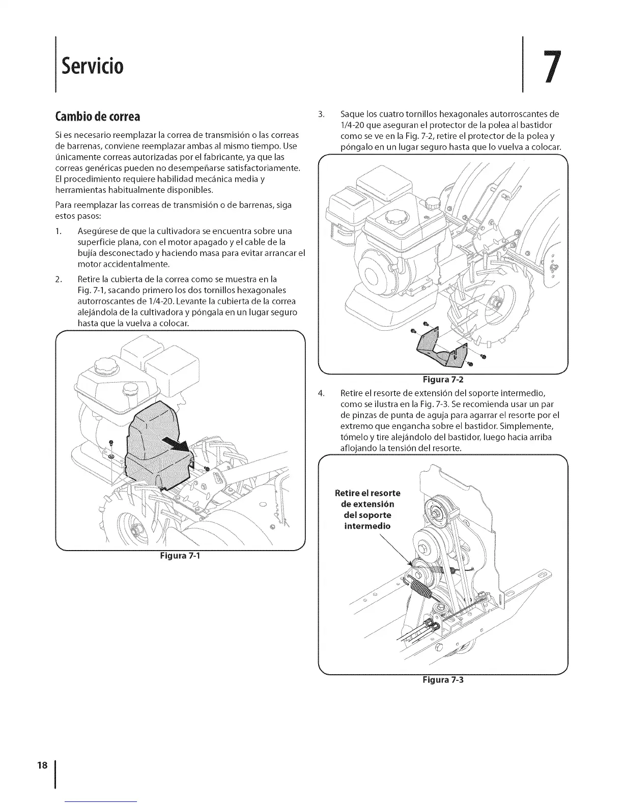 como se ve en la Fig. 7-2, retire el protector de la polea y