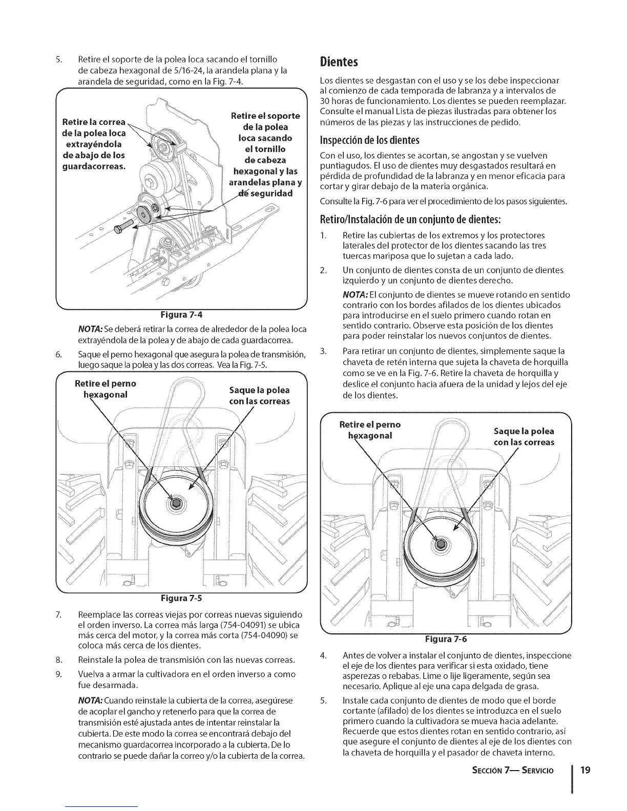 luego saque la polea y las dos correas. Vea la Fig. 7-5.