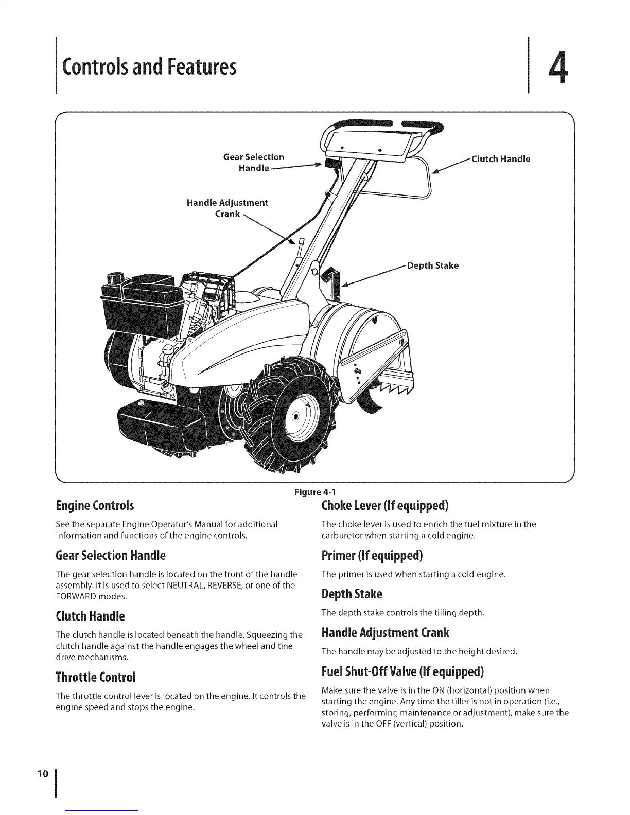 starting the engine. Any time the tiller is not in operation (i.e.,