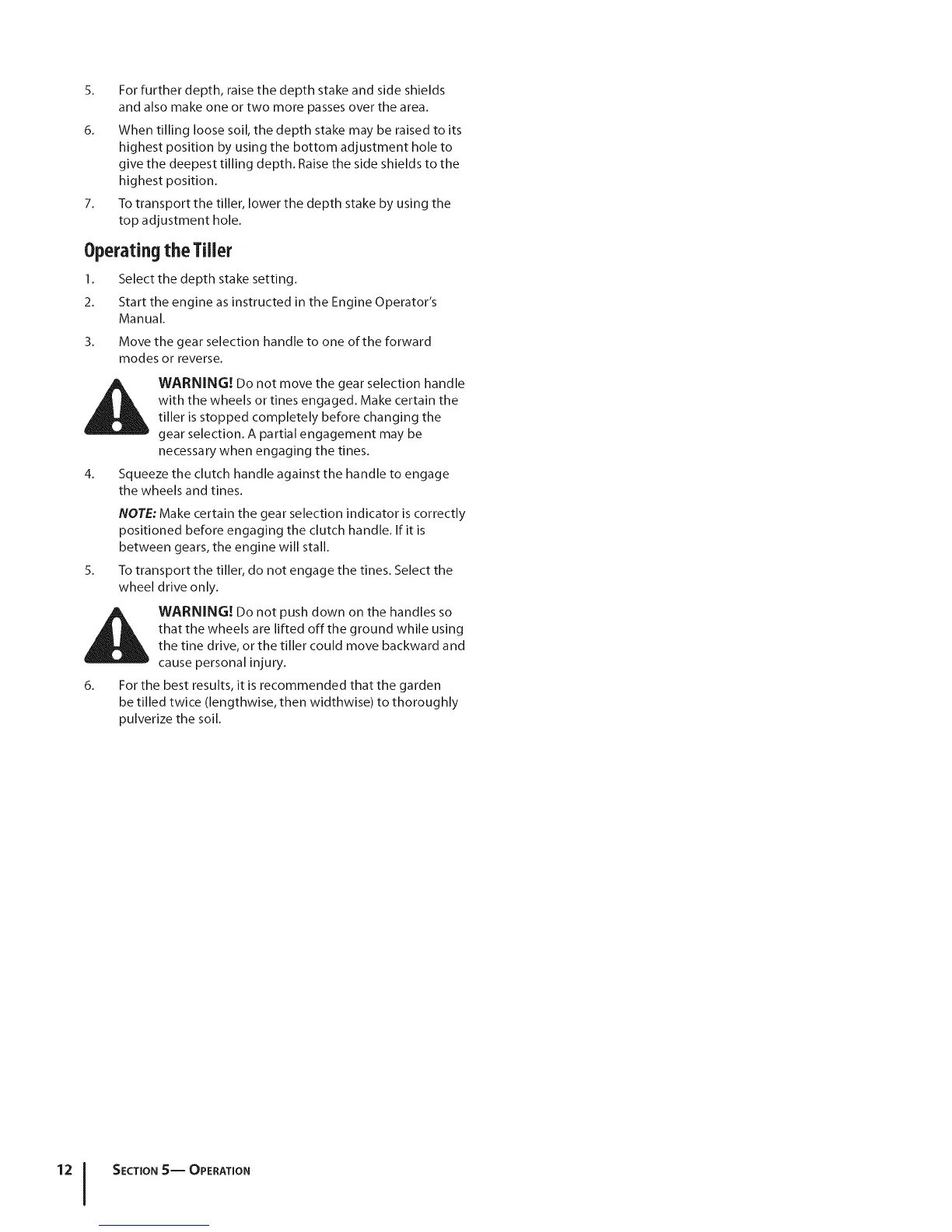 Operatingthe Tiller