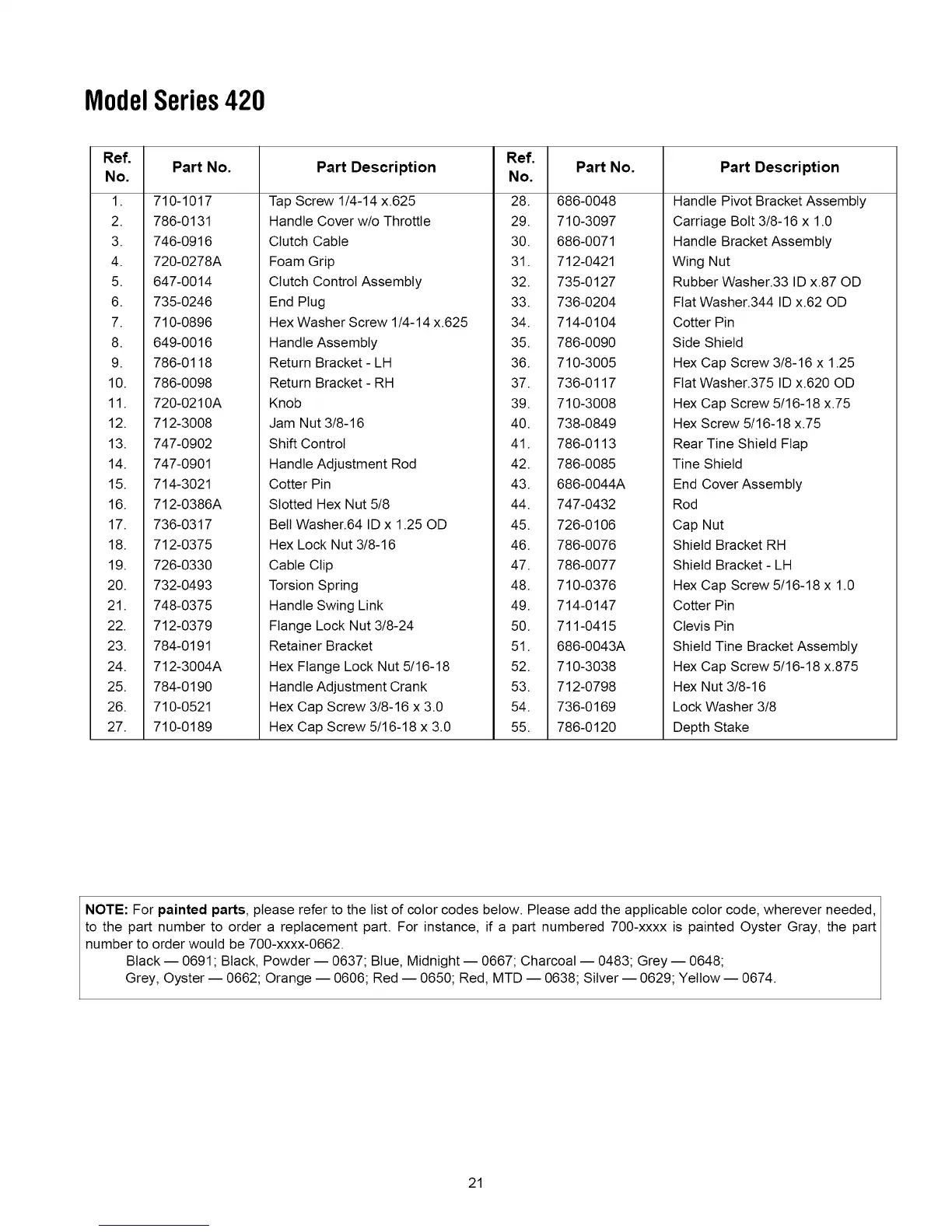 to the part number to order a replacement part. For instance, if a part numbered 700-xxxx is painted Oyster Gray, the part