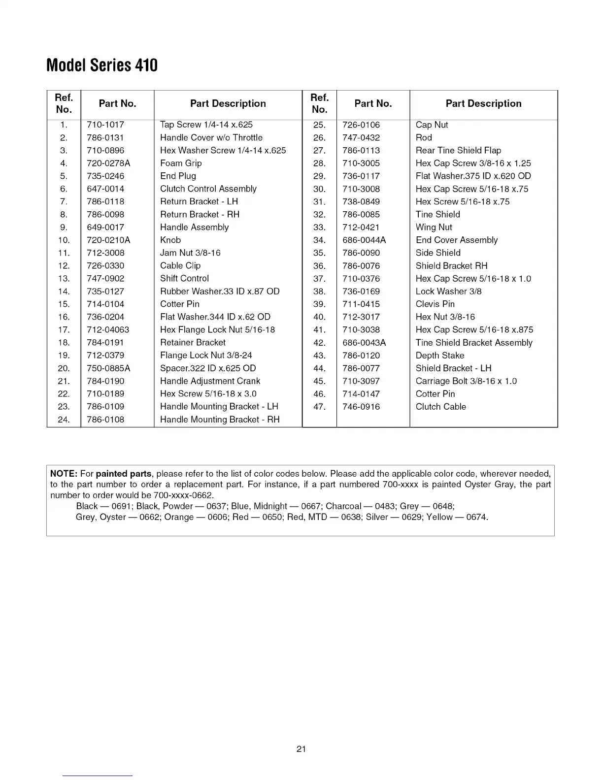 to the part number to order a replacement part. For instance, if a part numbered 700-xxxx is painted Oyster Gray, the part