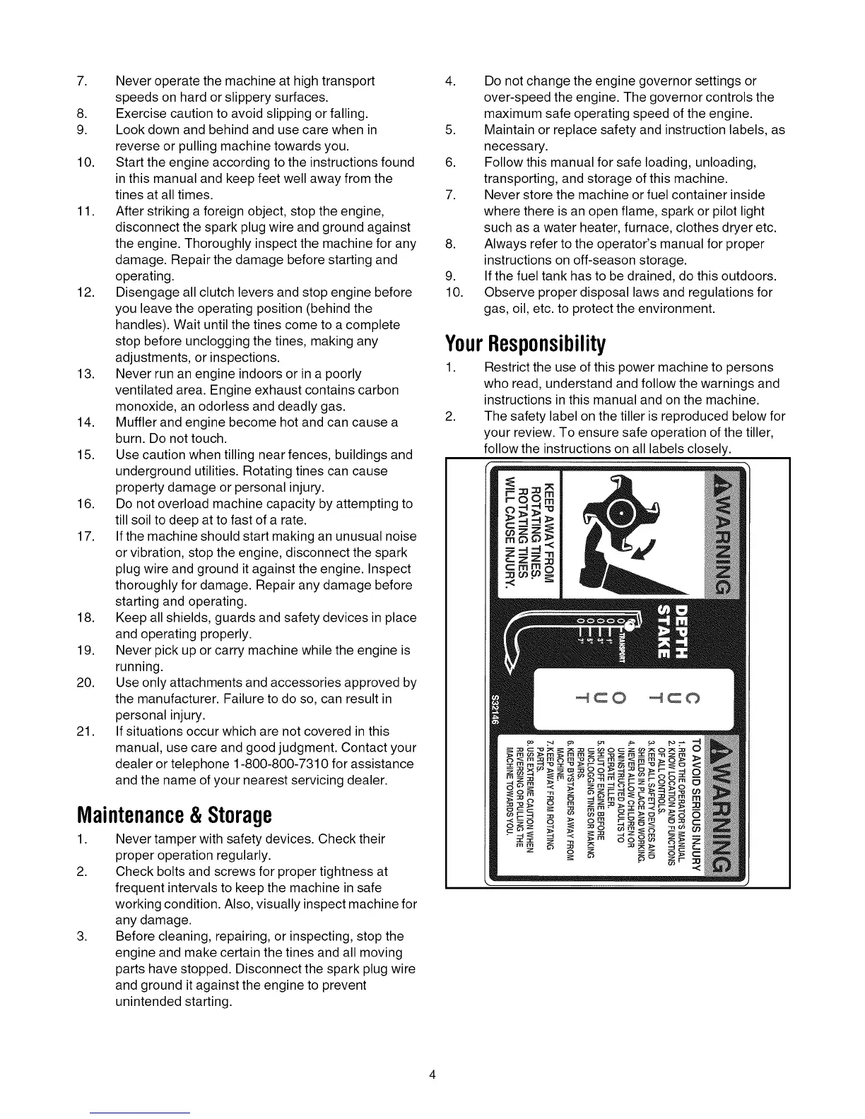2. The safety label on the tiller is reproduced below for