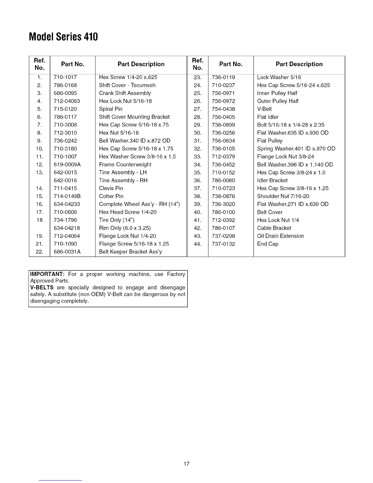safely. A substitute (non OEM) V-Belt can be dangerous by not