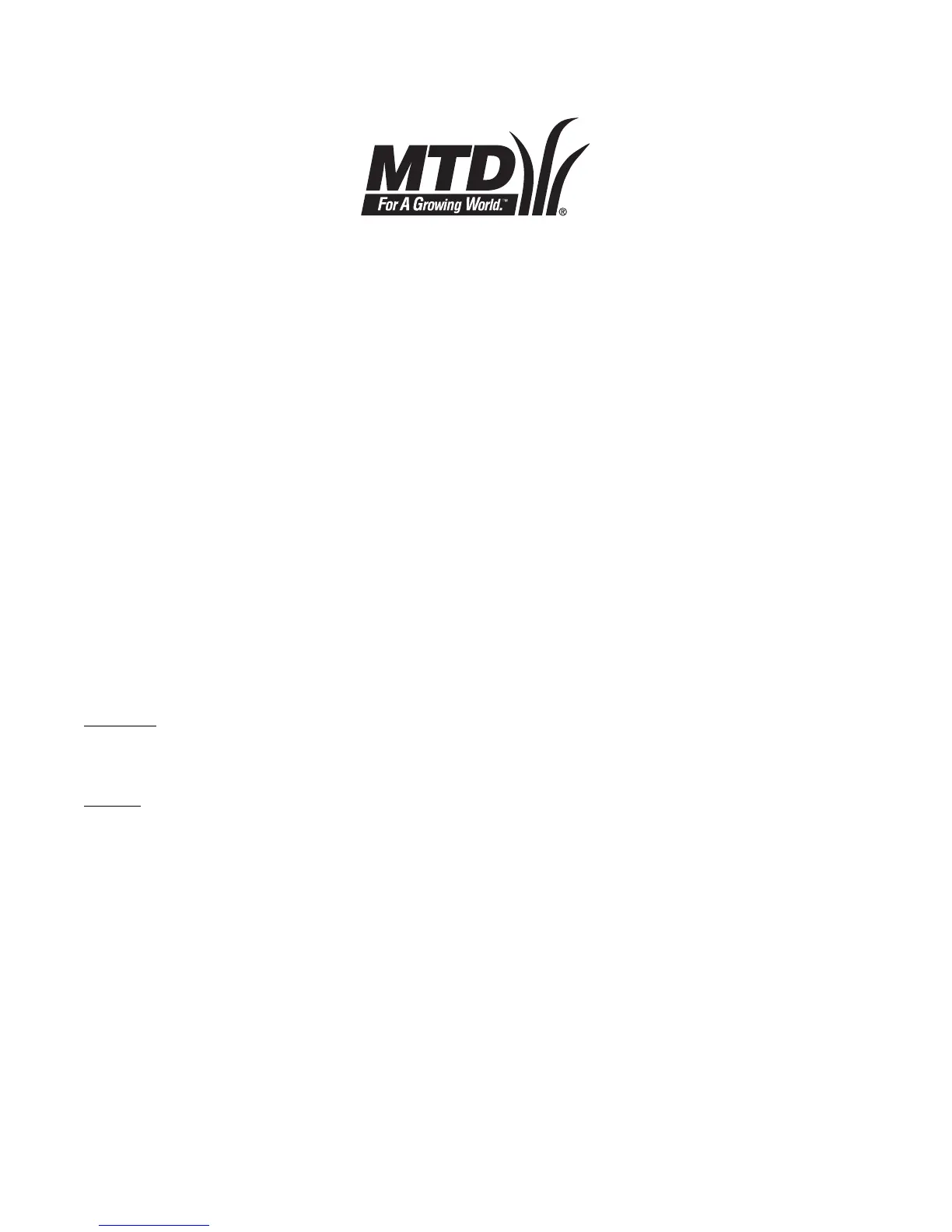 MTD Products Ltd., P. O. BOX 1386, KITCHENER, ON N2G 4J1; Phone: 1-800-668-1238