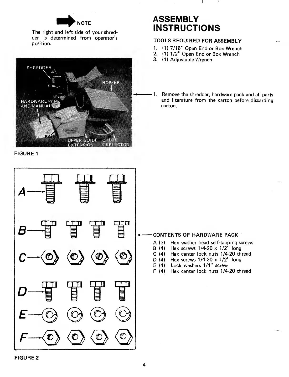 MTD 242-650A - Contents of Hardware Pack
