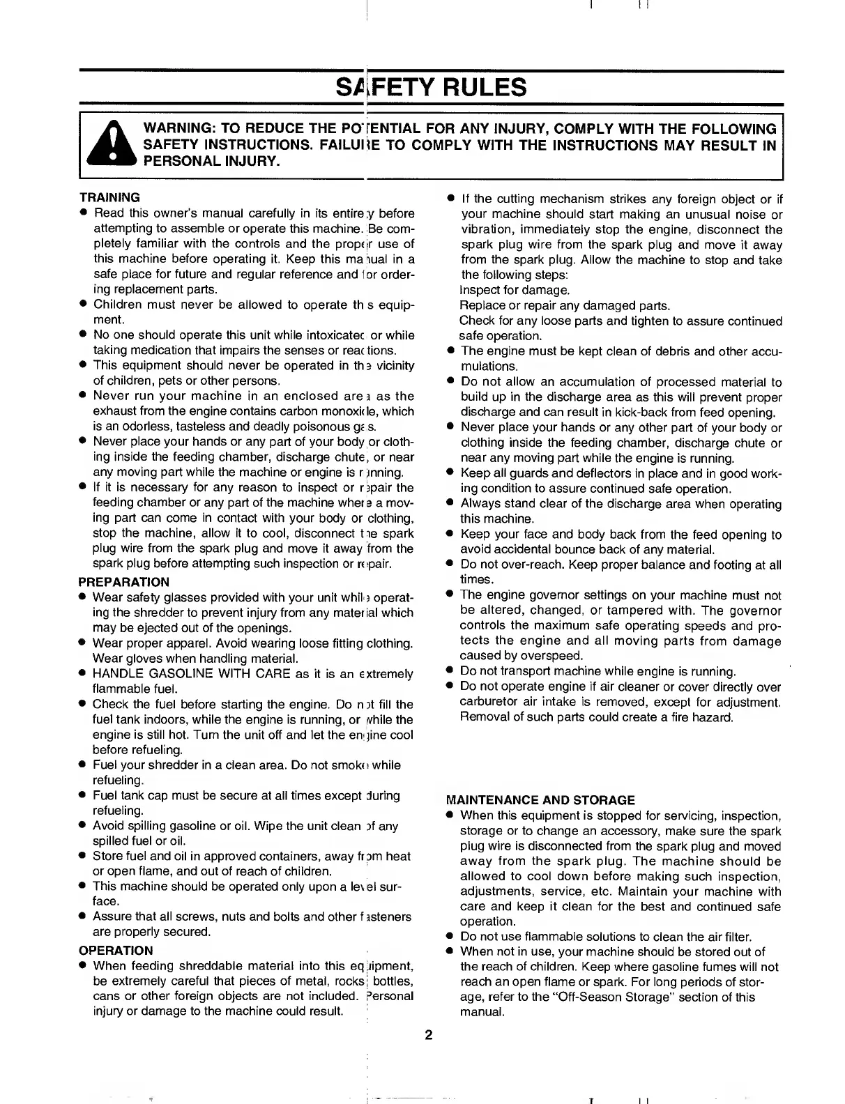 MTD 243-645B000 - Safety Rules; Training and Preparation; Operation Safety; Maintenance and Storage