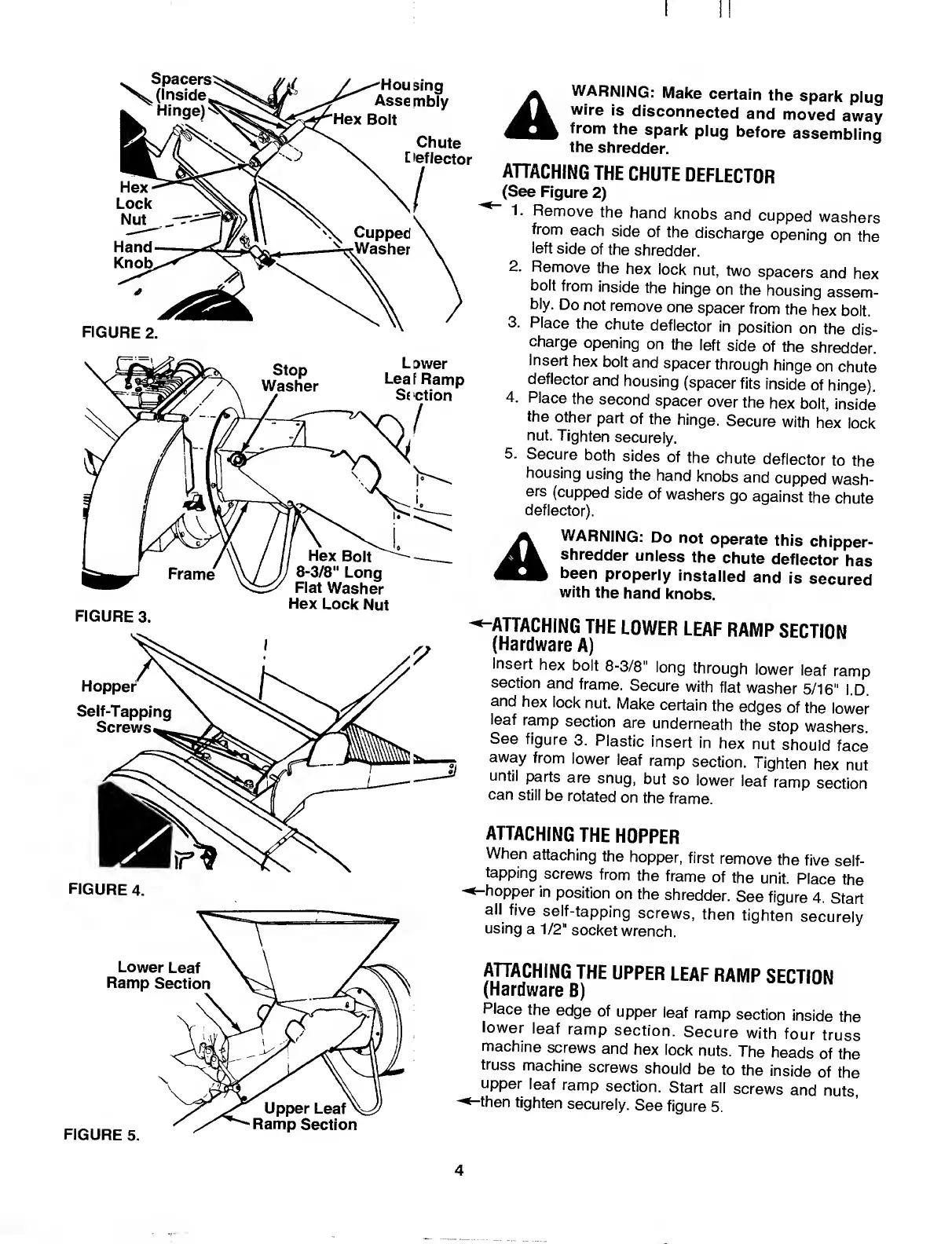 MTD 243-645B000 - Attaching Chute Deflector; Attaching Leaf Ramp Sections; Attaching Hopper and Catcher Bag