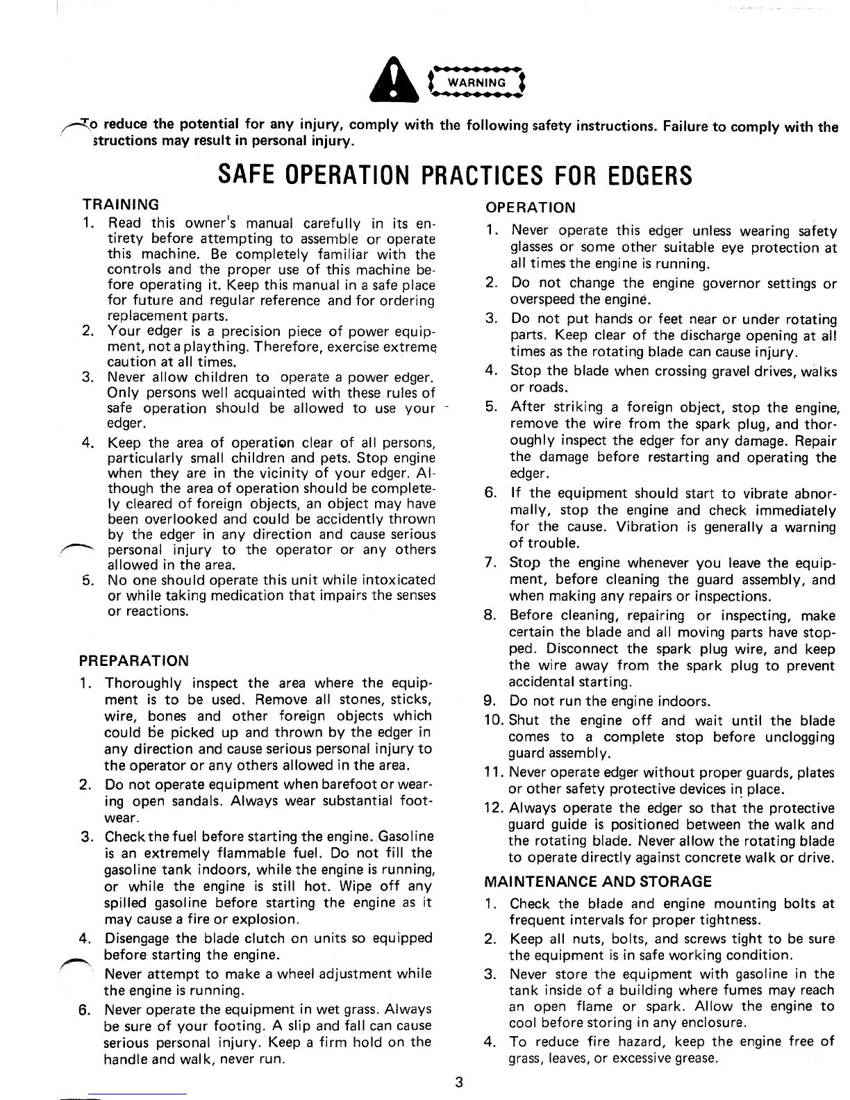 MTD 24596-9 - Safety Information; Safe Maintenance and Storage