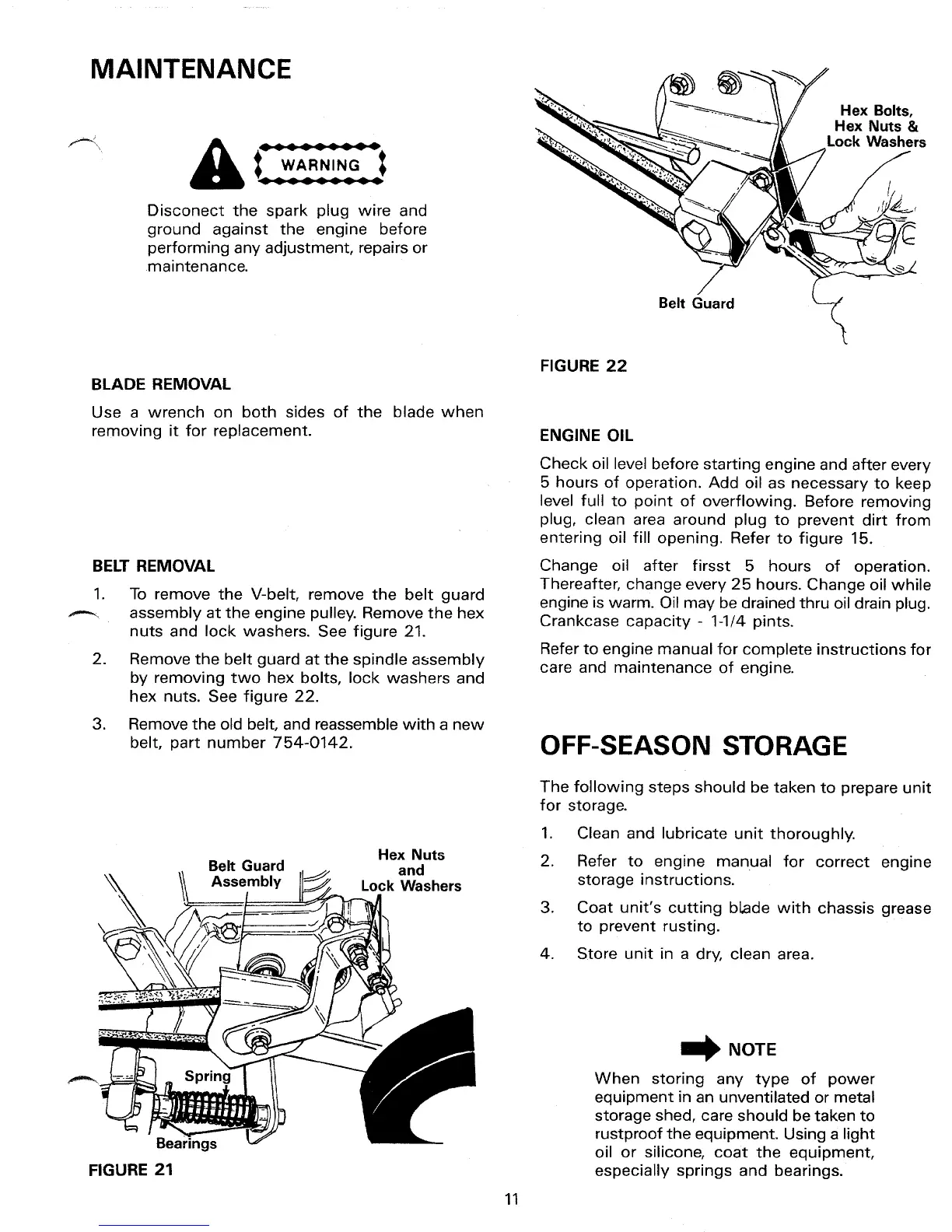 MTD 24604-9 - Maintenance; Blade Removal and Replacement; Belt Removal and Replacement; Engine Oil Service