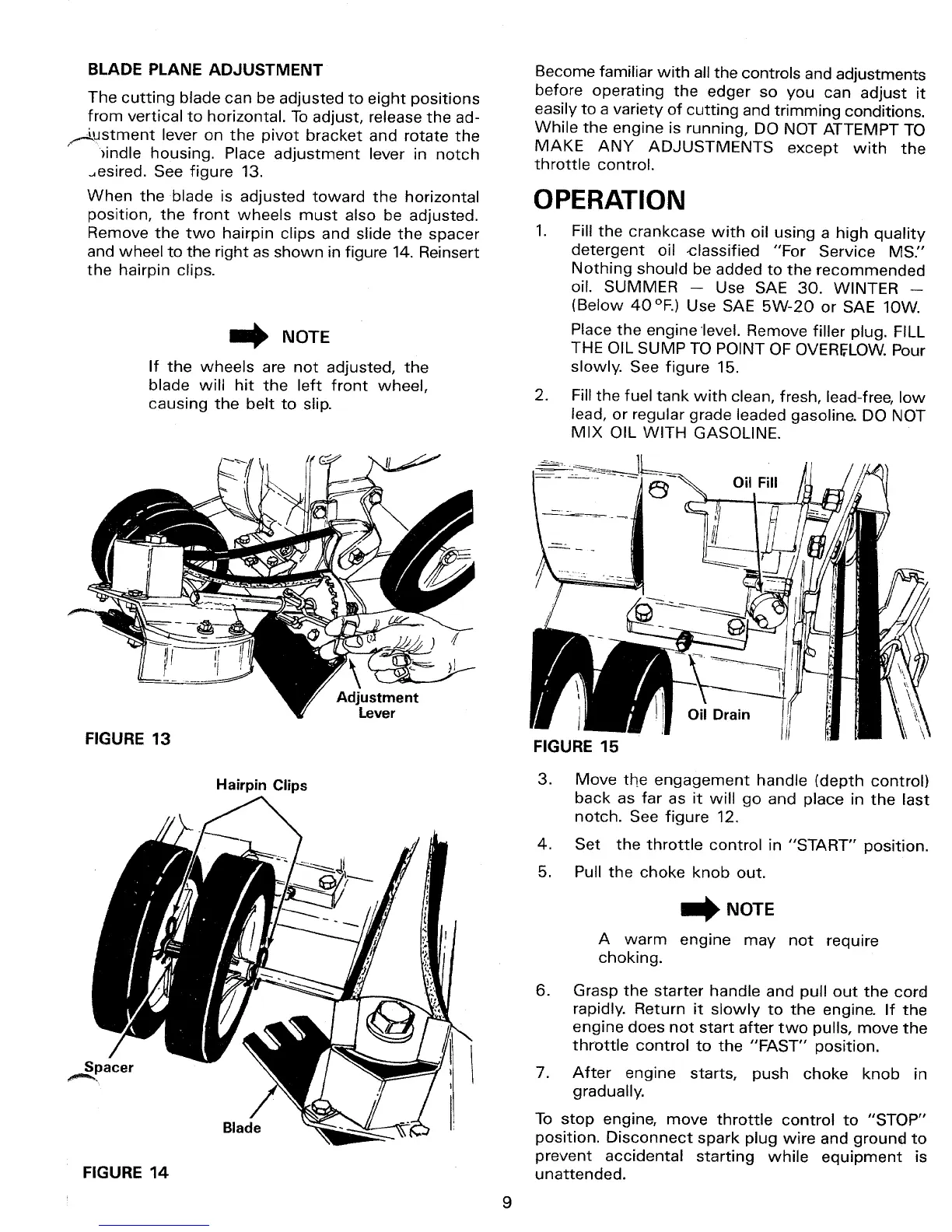 MTD 24604-9 - Operation; Filling Oil and Fuel; Starting the Engine; Stopping the Engine