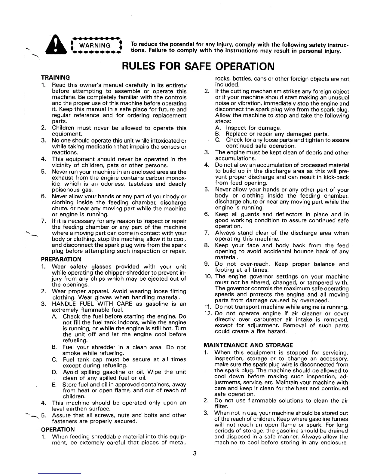 MTD 24650-9 - Rules for Safe Operation