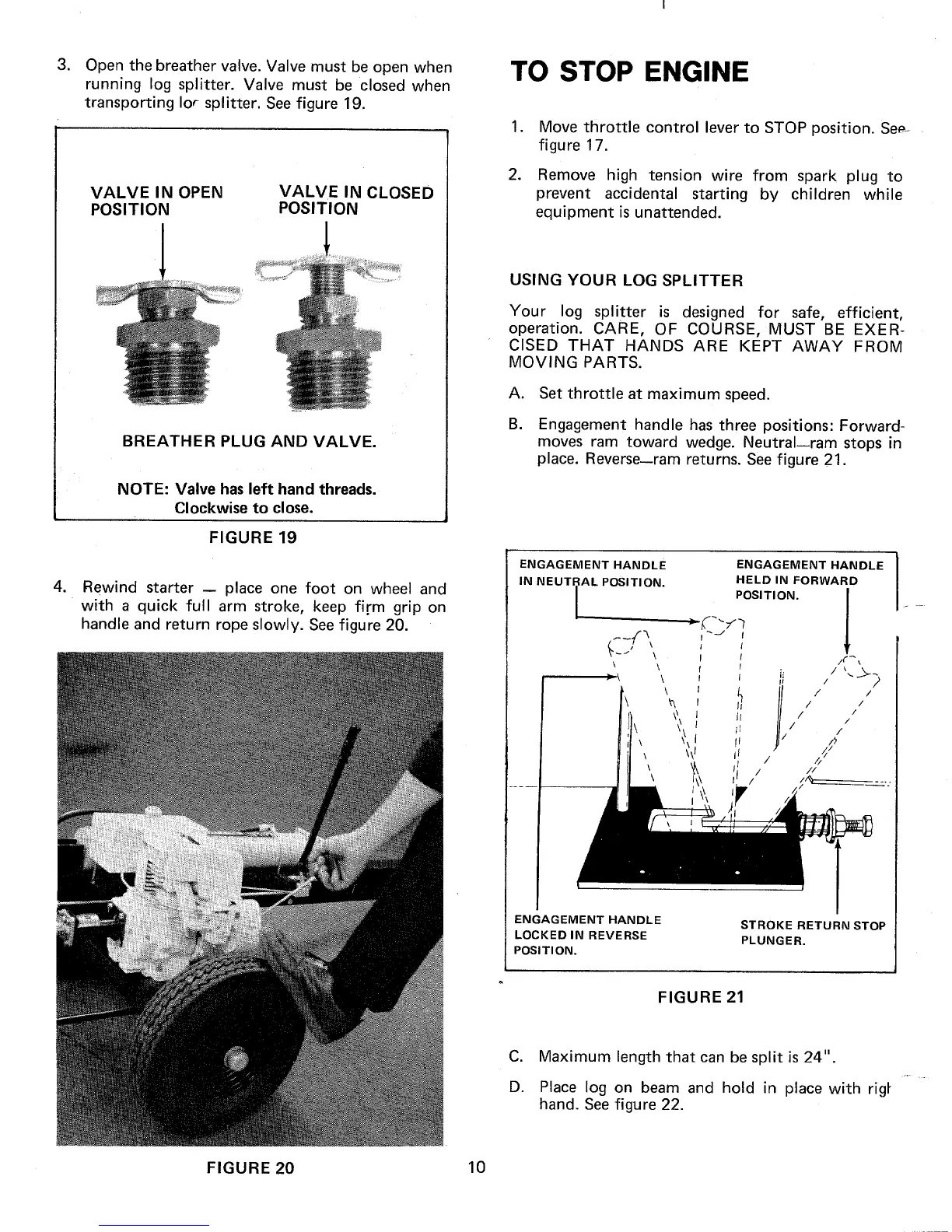 MTD 249-645A - STOPPING THE ENGINE; USING YOUR LOG SPLITTER