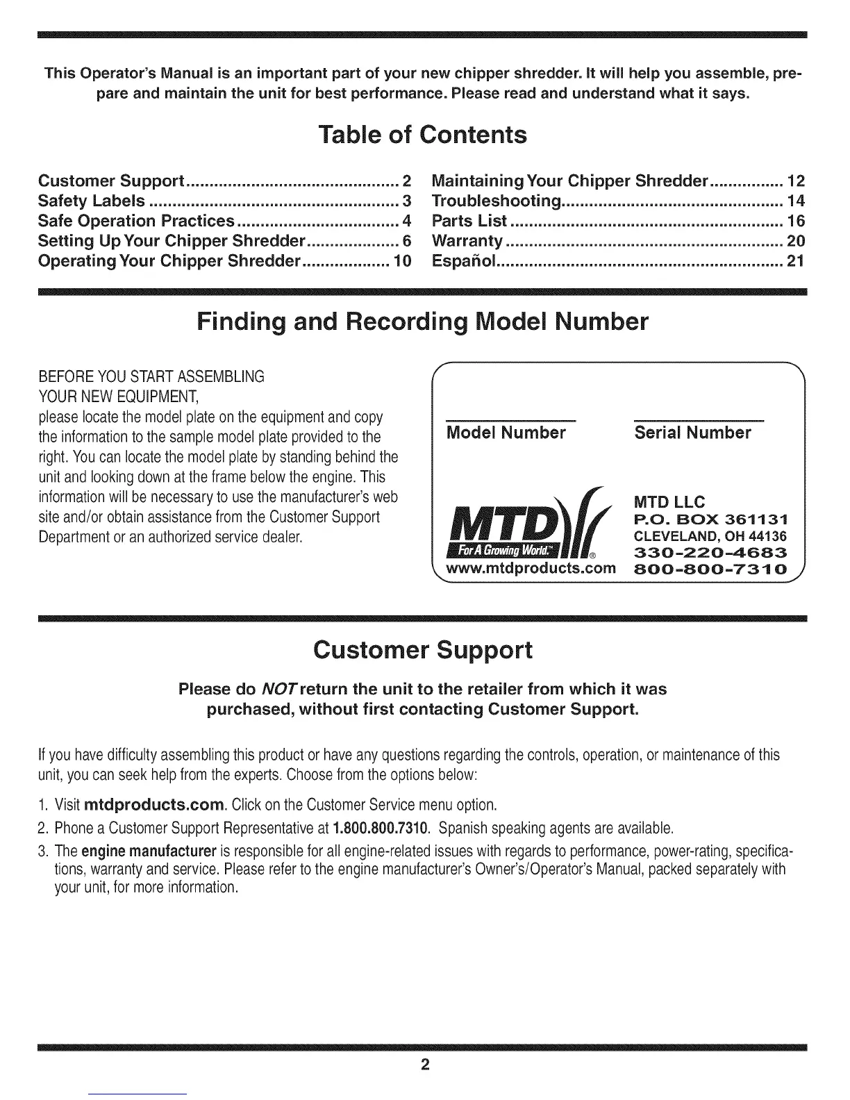 This Operator's IVlanual is an important part of your new chipper shredder, it will help you assemble, pre-