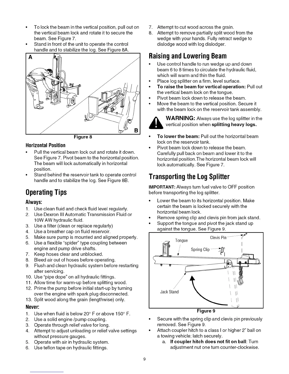 before transporting the log splitter.