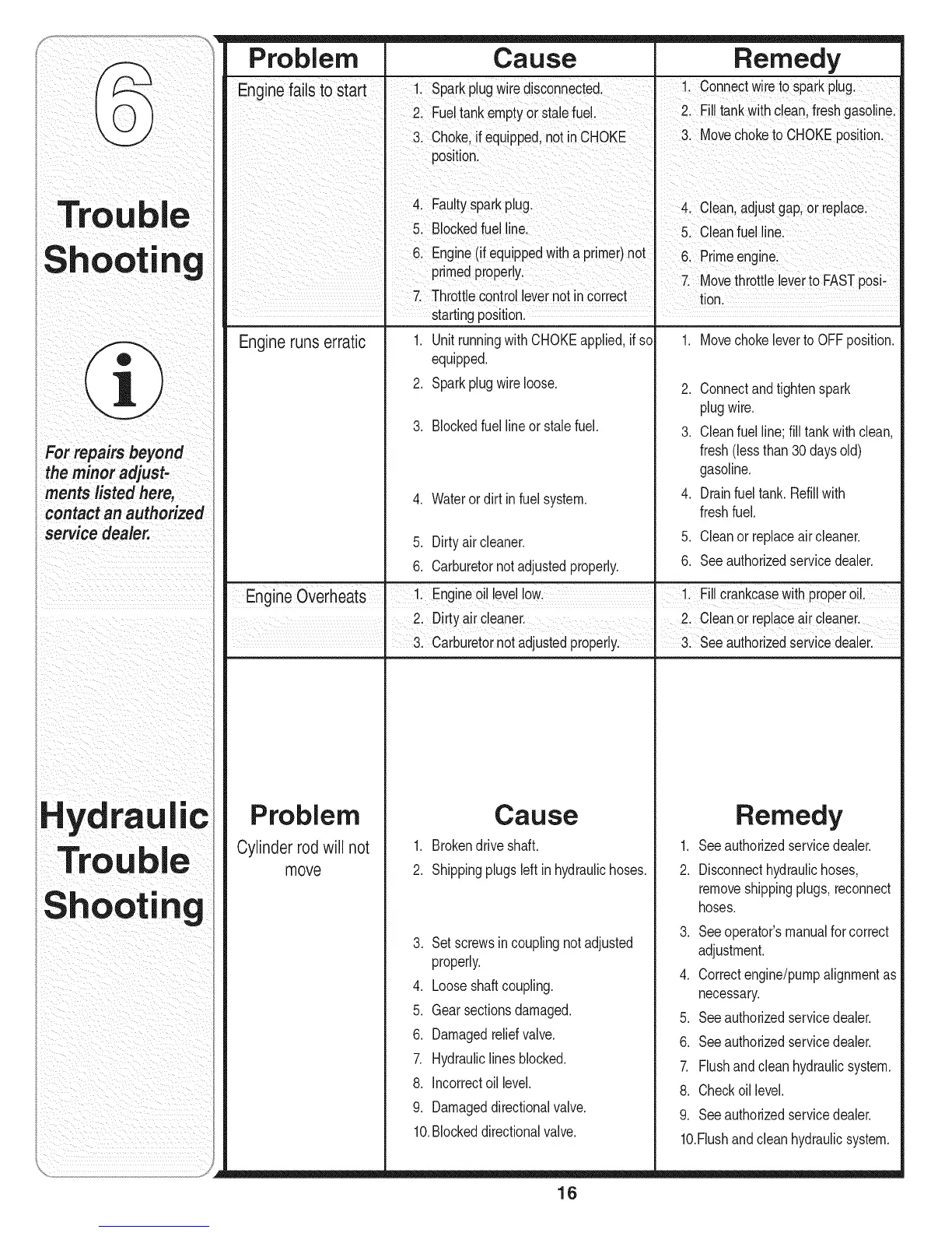 6. Carburetornotadjustedproperly. 6. Seeauthorizedservicedealer.
