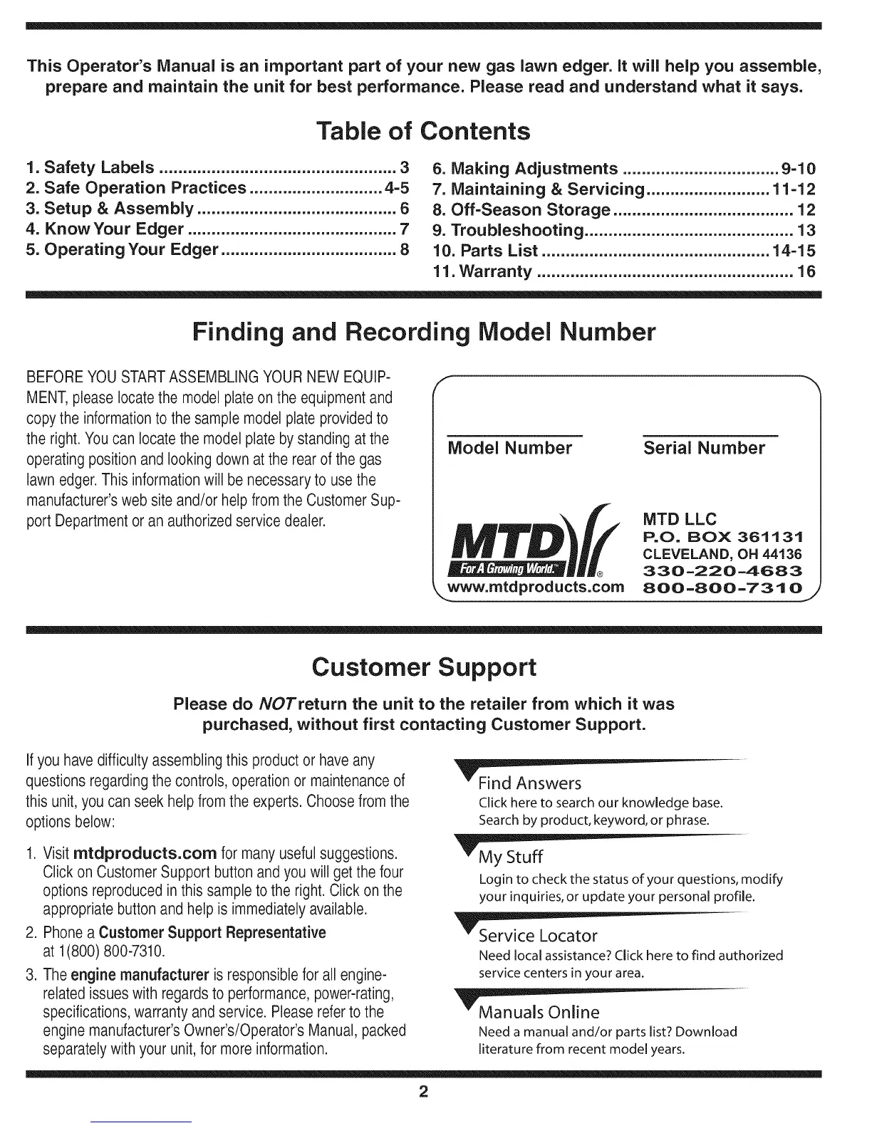 1. Visit mtdproducts.com for many usefulsuggestions.