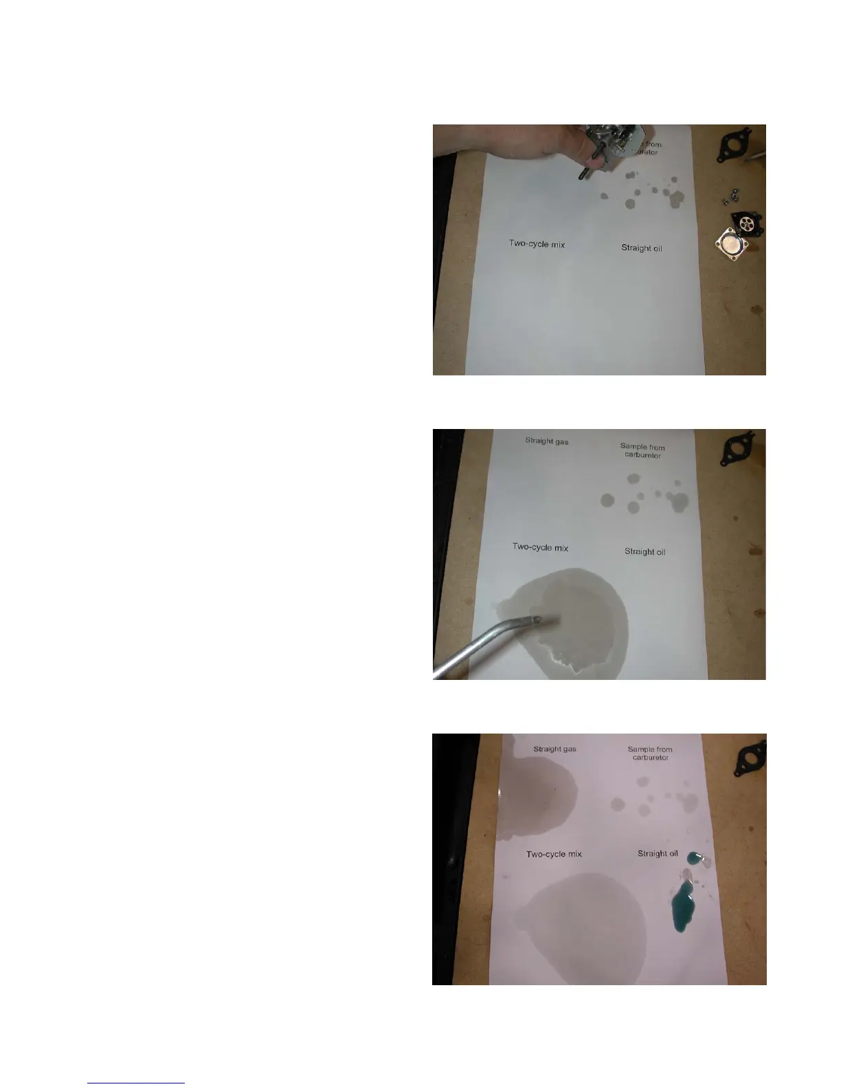 3. Get a sample of fuel from the carburetor and pour it