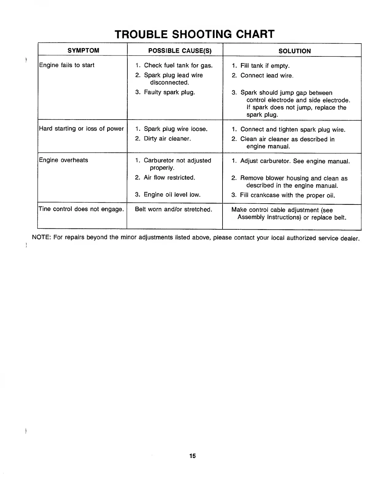 MTD 310 - Trouble Shooting Chart.15