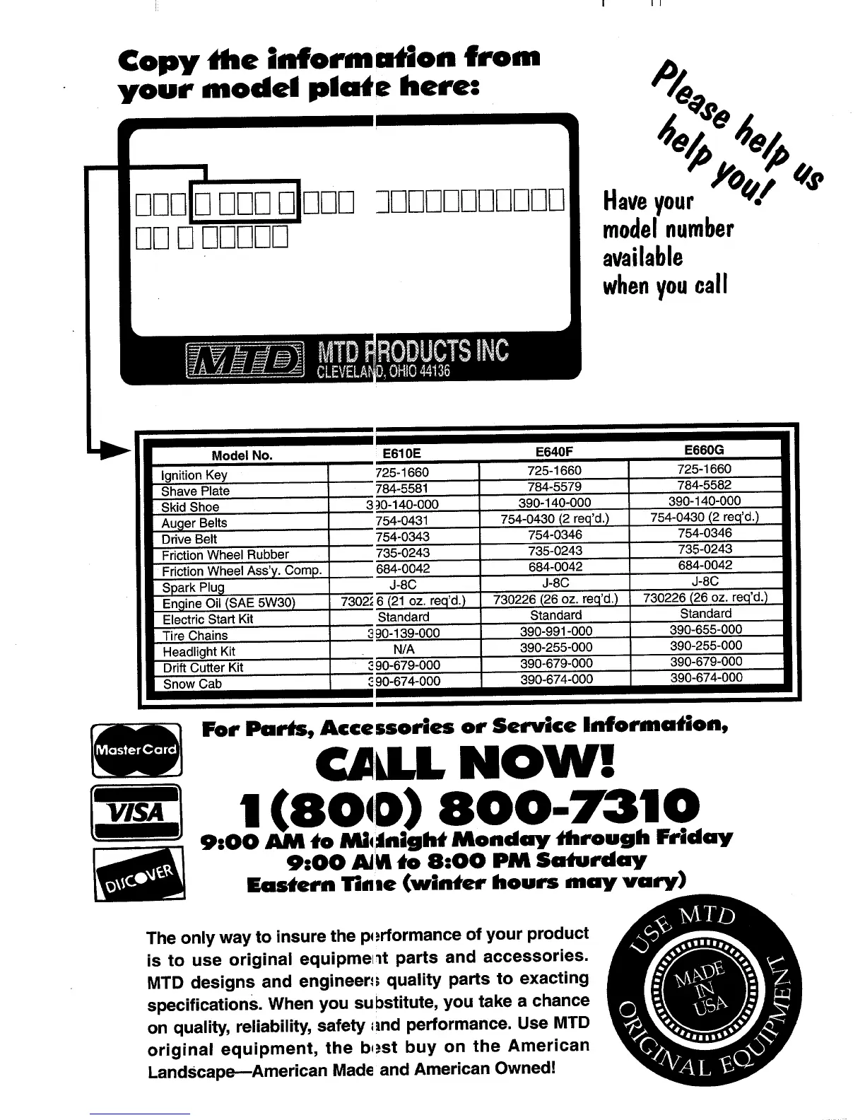 MTD 315E610E000