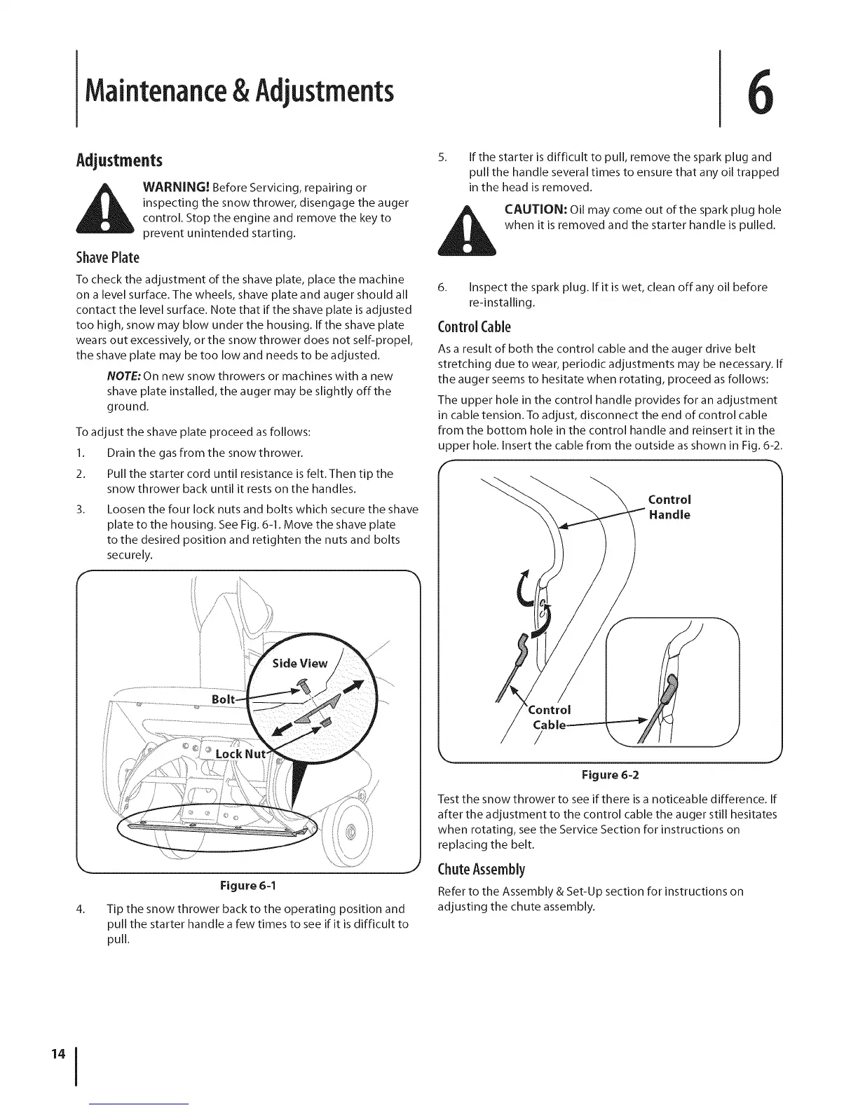 too high, snow may blow under the housing. If the shave plate