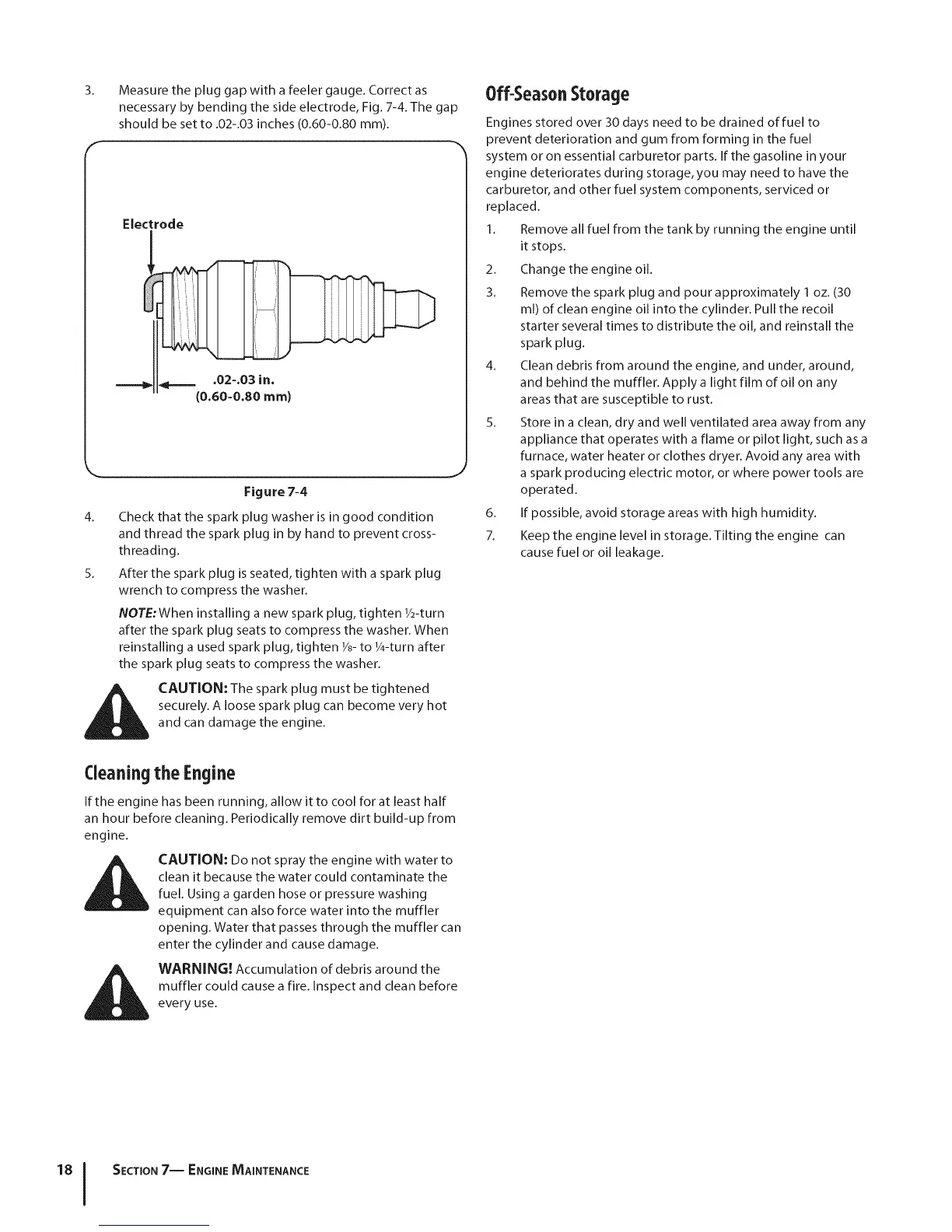 reinstalling a used spark plug, tighten Ys- to 1/4-turn after
