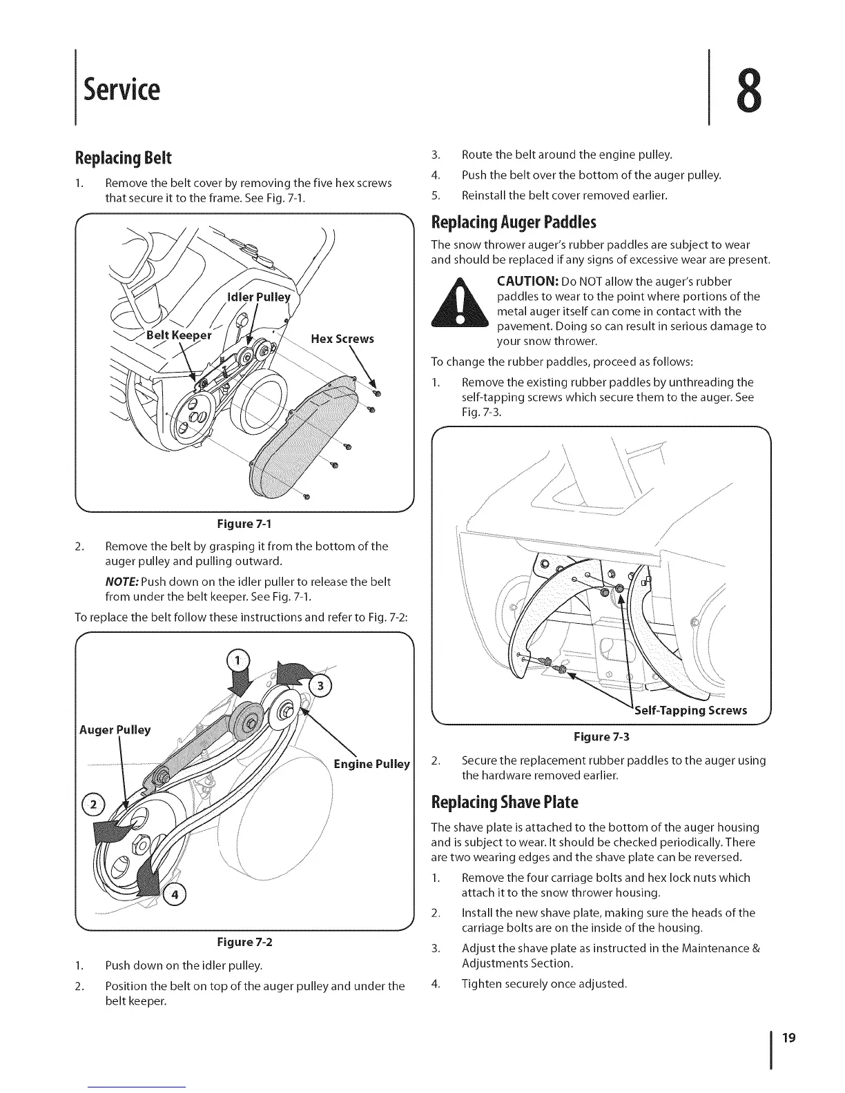 i_[i CAUTION: Do NOT allow the auger's rubber