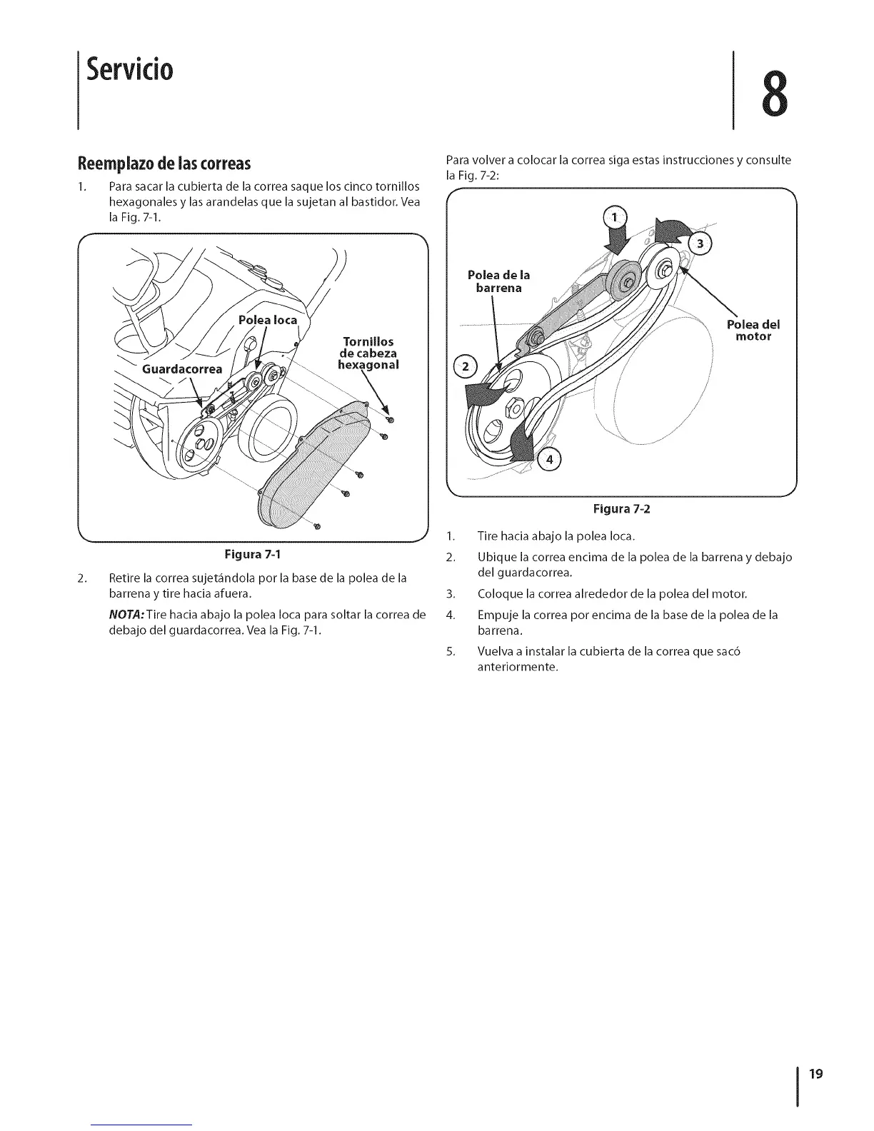 debajo del guardacorrea. Vea la Fig. 7-1.