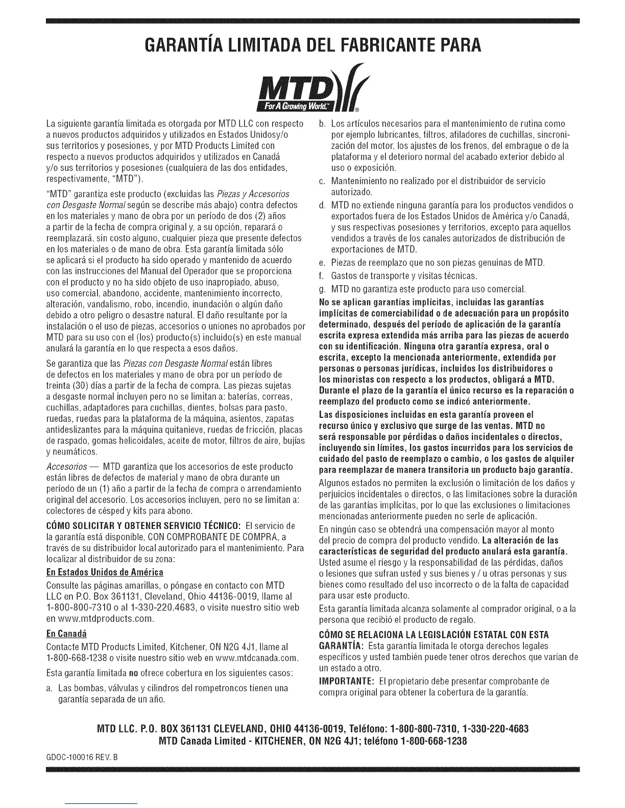 1-800-668-1238 o visite nuestro sitio web enwww.mtdcanada.com.