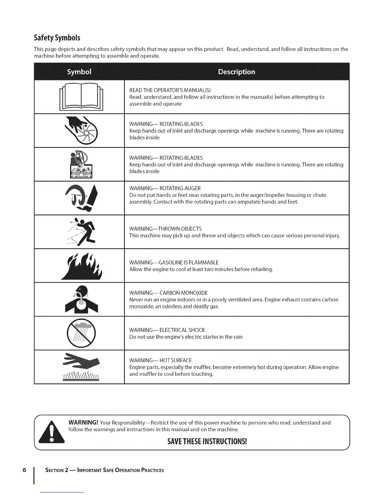 WARNING! Your Responsibility--Restrict the use of this power machine to persons who read, understand and