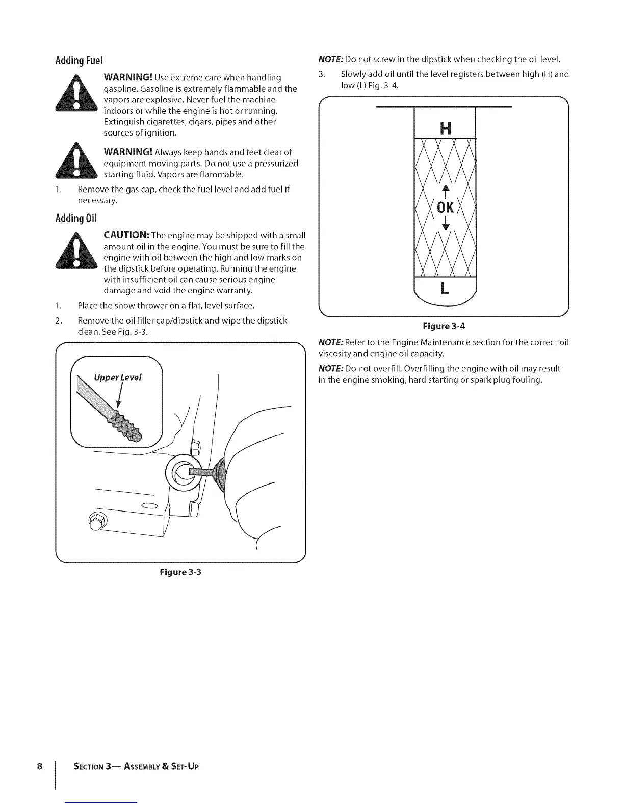 NOTE: Do not overfill. Overfilling the engine with oil may result