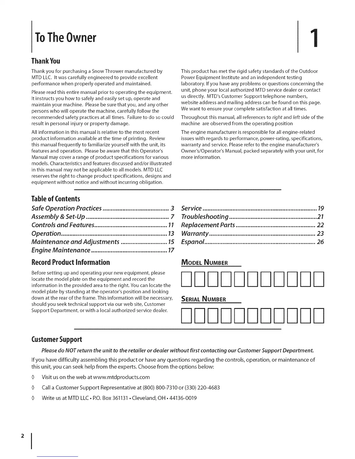 0 Write us at MTD LLC • RO. Box 361131 • Cleveland, OH • 44136-0019