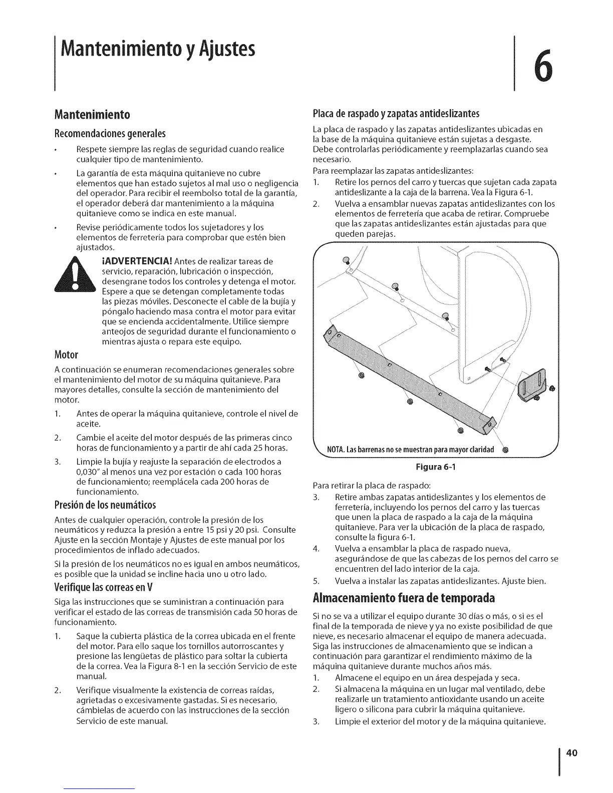 el mantenimiento del motor de su m_quina quitanieve. Para