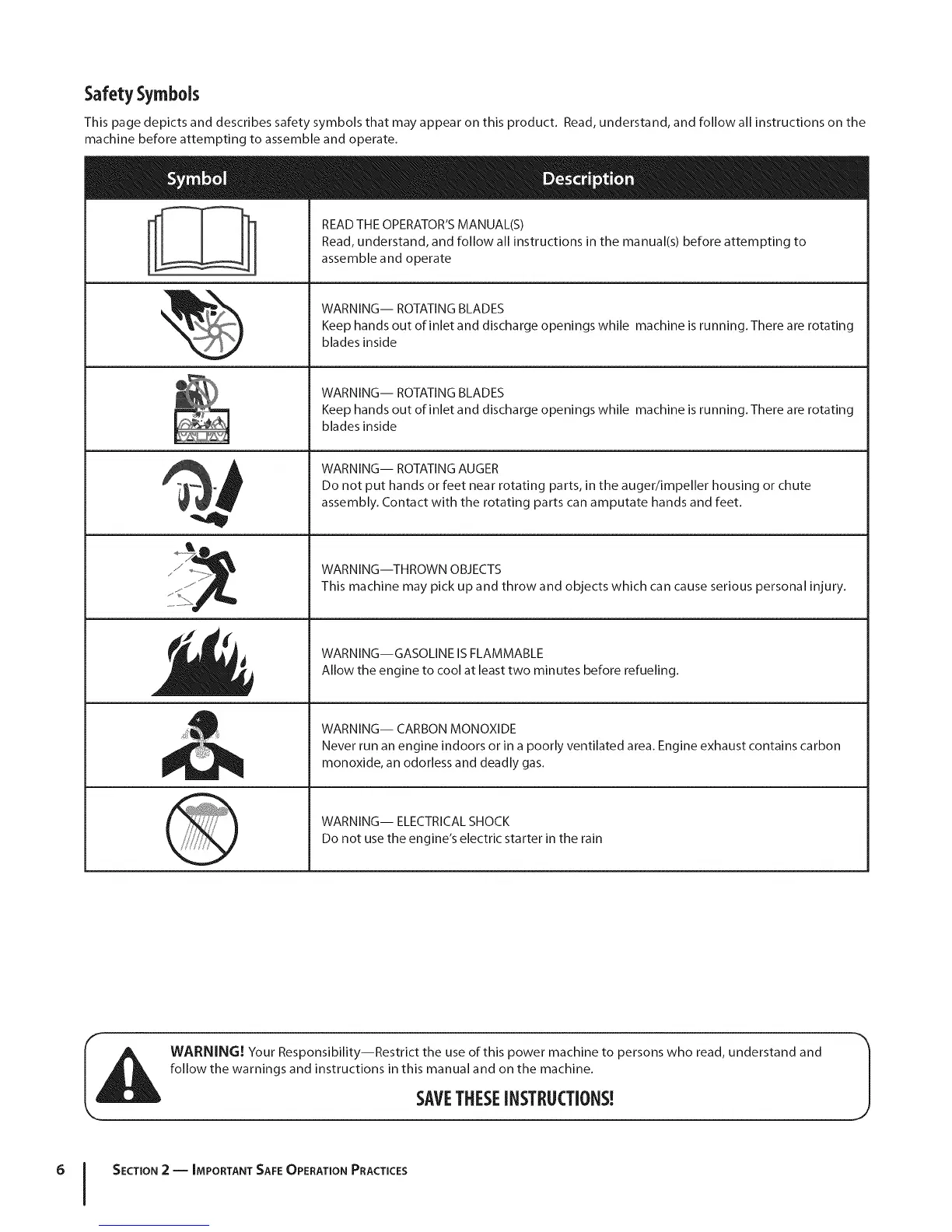 WARNING! Your Responsibility--Restrict the use of this power machine to persons who read, understand and